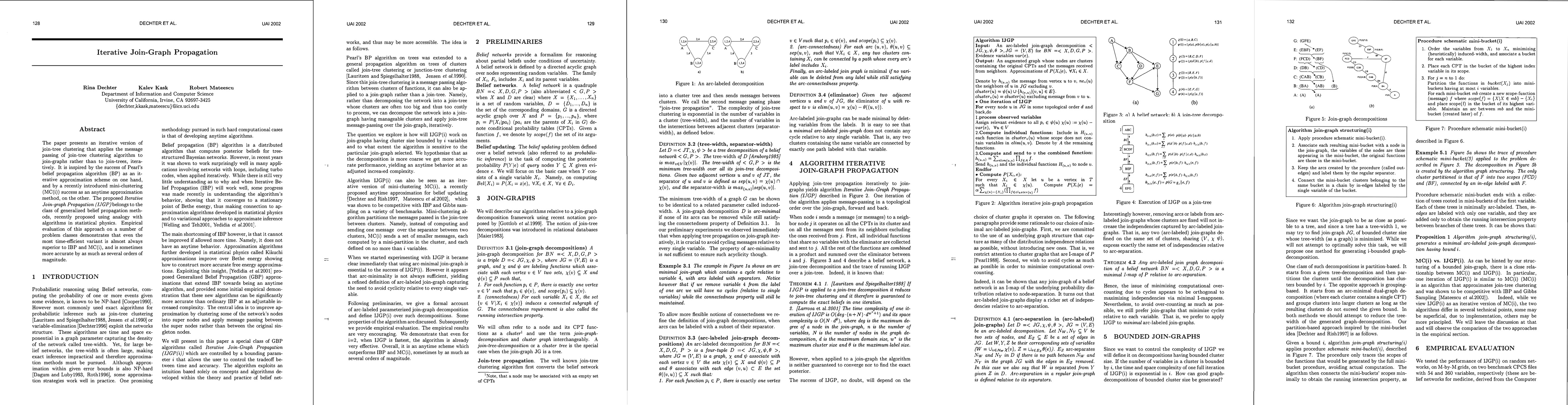 The paper presents an iterative version of join-tree clustering that applies the message passing of join-tree clustering algorithm to join-graphs rather than to join-trees, iteratively. It is inspired by the success of Pearl's belief propagation algorithm as an iterative approximation scheme on one hand, and by a recently introduced mini-clustering i. success as an anytime approximation method, on the other. The proposed Iterative Join-graph Propagation IJGP belongs to the class of generalized belief propagation methods, recently proposed using analogy with algorithms in statistical physics. Empirical evaluation of this approach on a number of problem classes demonstrates that even the most time-efficient variant is almost always superior to IBP and MC i, and is sometimes more accurate by as much as several orders of magnitude.
