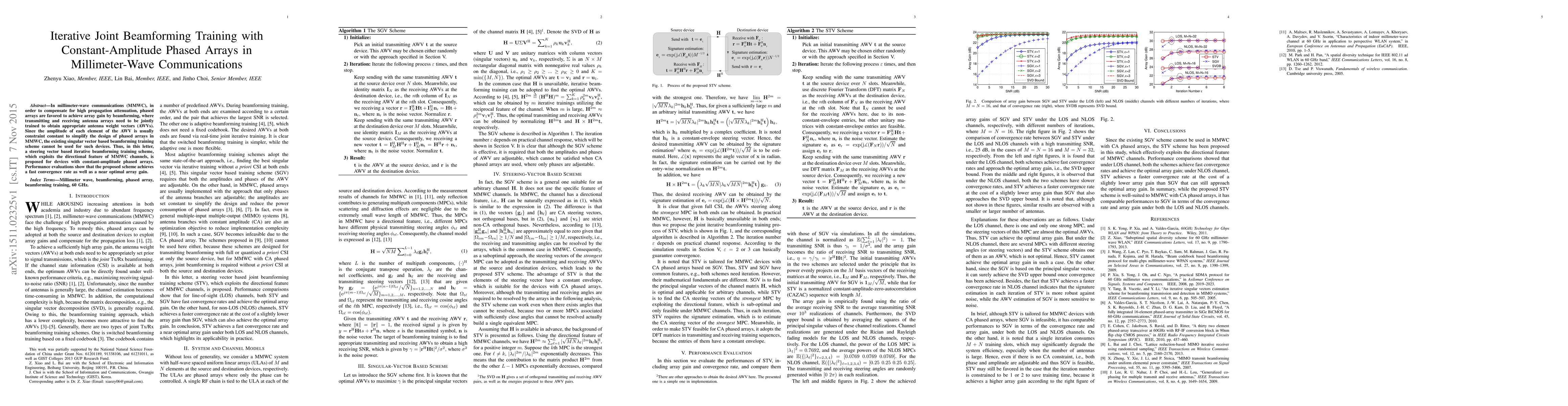 This paper proposes an iterative joint beamforming training scheme for constant-amplitude phased arrays in millimeter-wave communication to compensate for high propagation attenuation. The new steering vector based method achieves fast convergence and near-optimal array gain, overcoming limitations of existing singular vector based training schemes.