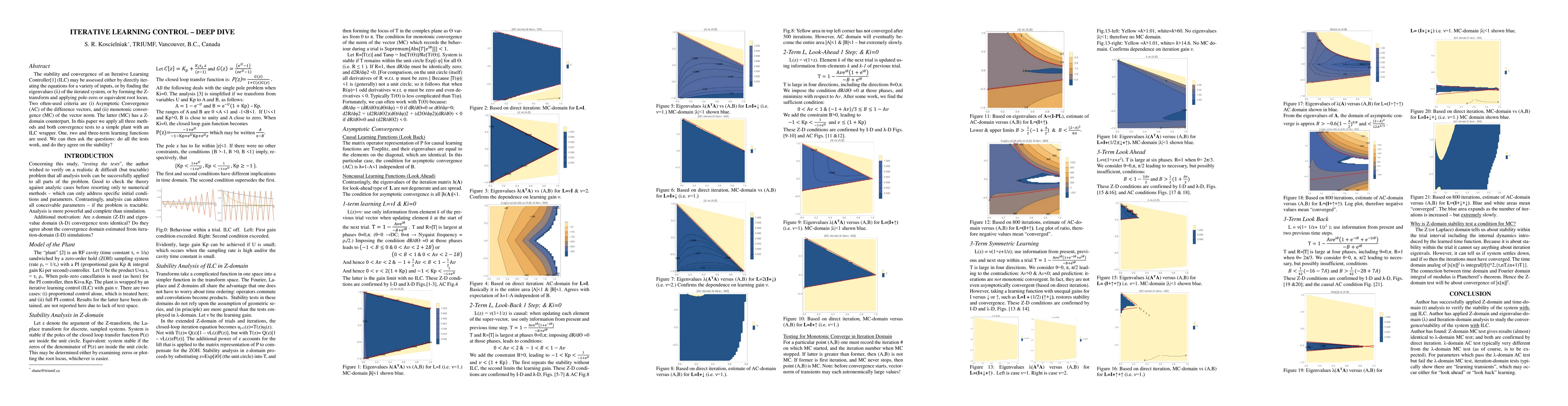 The stability and convergence of an Iterative Learning Controller (ILC) may be assessed either by directly iterating the equations for a variety of inputs, or by finding the eigenvalues of the iterated system, or by forming the Z-transform and applying pole-zero or equivalent root locus. Two often-used criteria are (i) Asymptotic Convergence (AC) of the difference vectors, and (ii) mono-tonic convergence (MC) of the vector norm. The latter (MC) has a Z- domain counterpart. In this paper we apply all three methods and both convergence tests to a simple plant with an ILC wrapper. One, two and three-term learning functions are used. We can then ask the questions: do all the tests work, and do they agree on the stability?