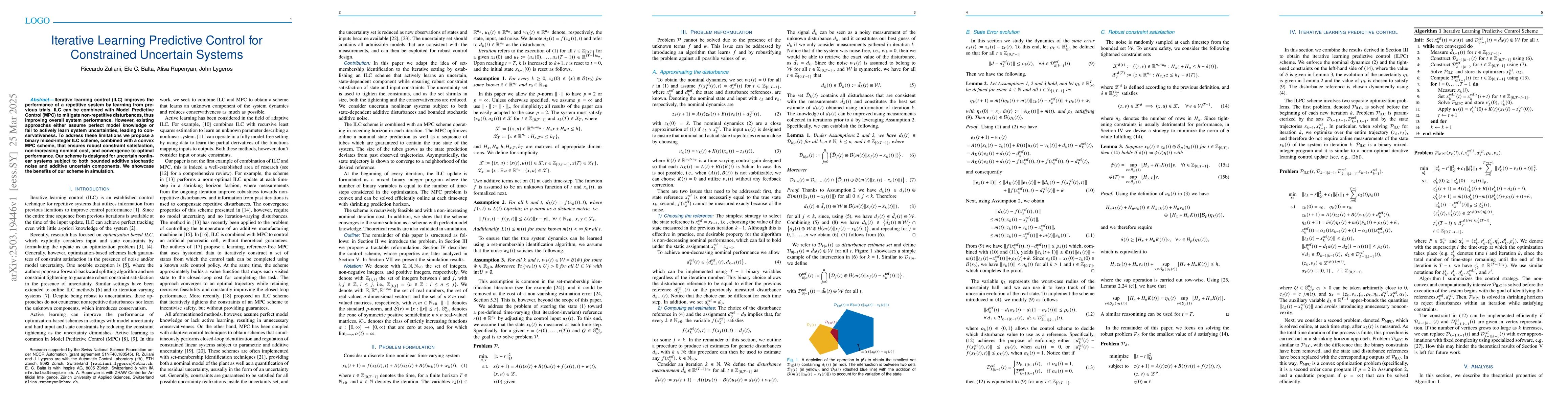The research proposes a binary mixed-integer iterative learning control (ILC) scheme combined with a convex Model Predictive Control (MPC) scheme for uncertain nonlinear systems with stochastic noise and uncertain components.