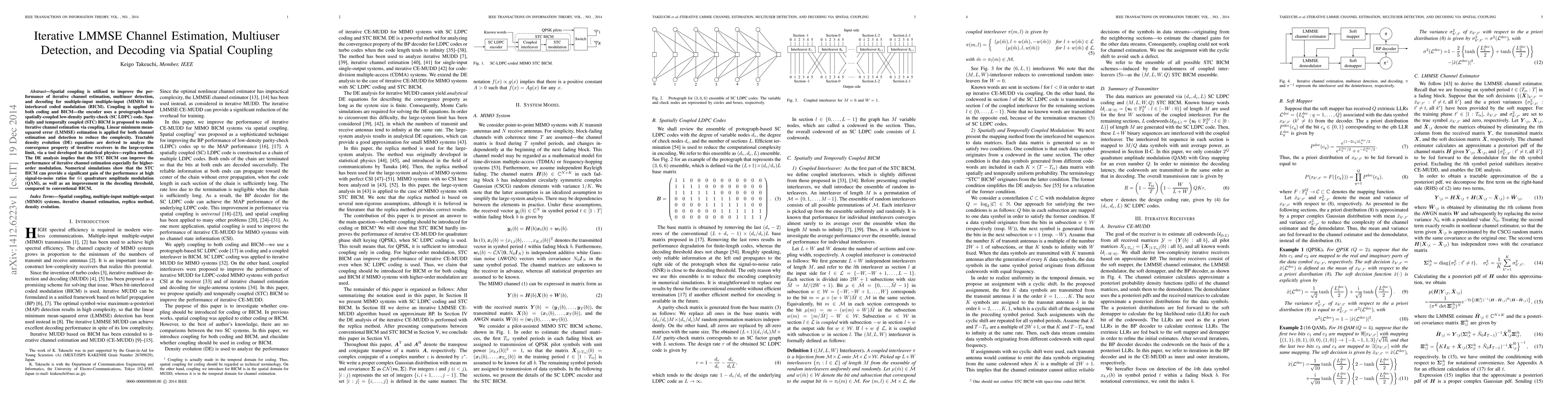 This paper proposes spatially and temporally coupled bit-interleaved coded modulation (STC BICM) for MIMO systems, utilizing iterative LMMSE channel estimation and multiuser detection. The approach employs a protograph-based spatially-coupled LDPC code and achieves performance improvements, especially for higher-order modulations like 64-QAM, as demonstrated by both density evolution analysis and numerical simulations.