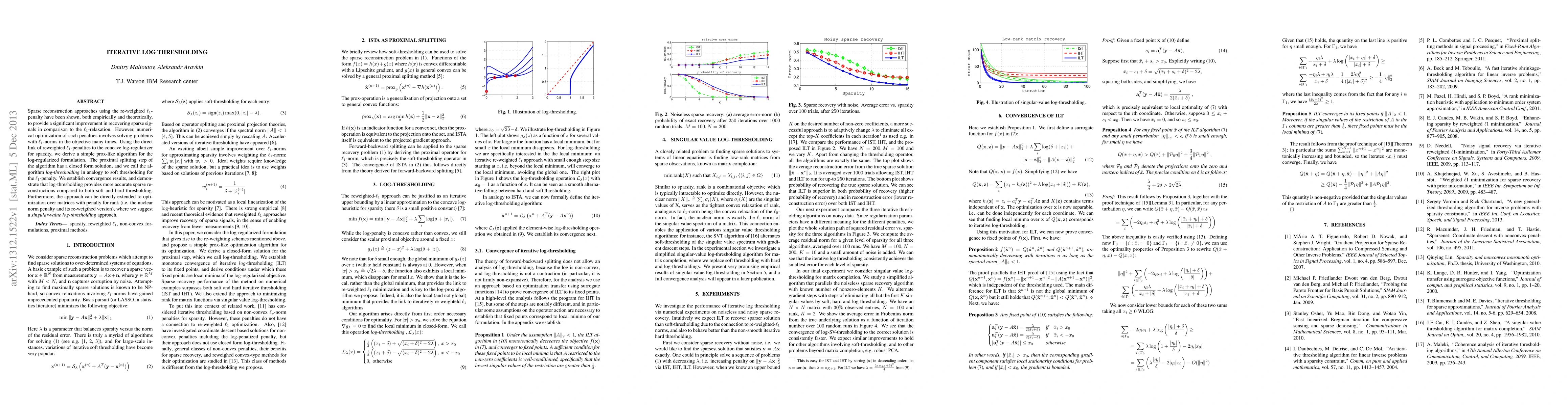 The paper proposes an iterative log-thresholding algorithm for sparse reconstruction, showing it provides more accurate results than traditional l1-penalty methods. The algorithm leverages a closed-form proximal splitting step and extends to matrix optimization with nuclear norm penalties.