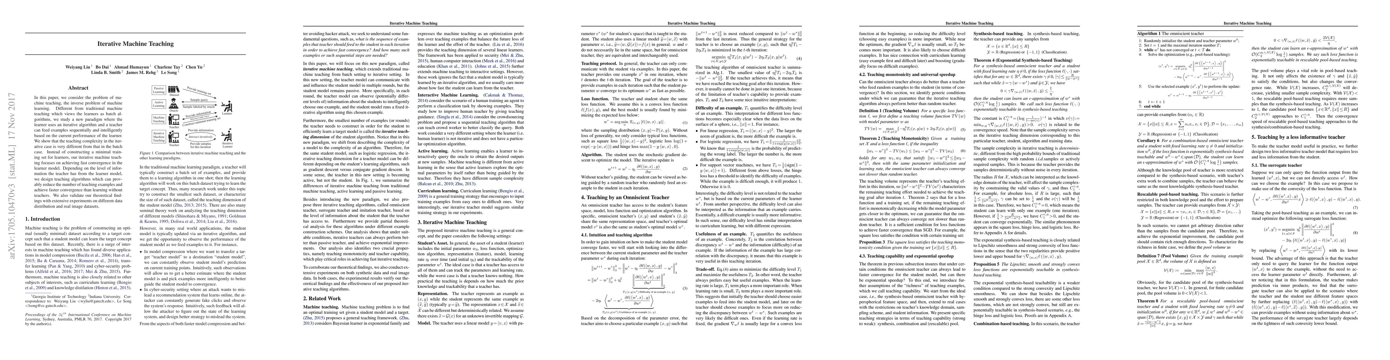 This paper explores iterative machine teaching, where a teacher provides examples sequentially based on the learner's performance, aiming for faster convergence. It contrasts this with traditional batch teaching, demonstrating that iterative teaching can reduce the number of examples needed and achieve faster learning, validated through experiments on various datasets.