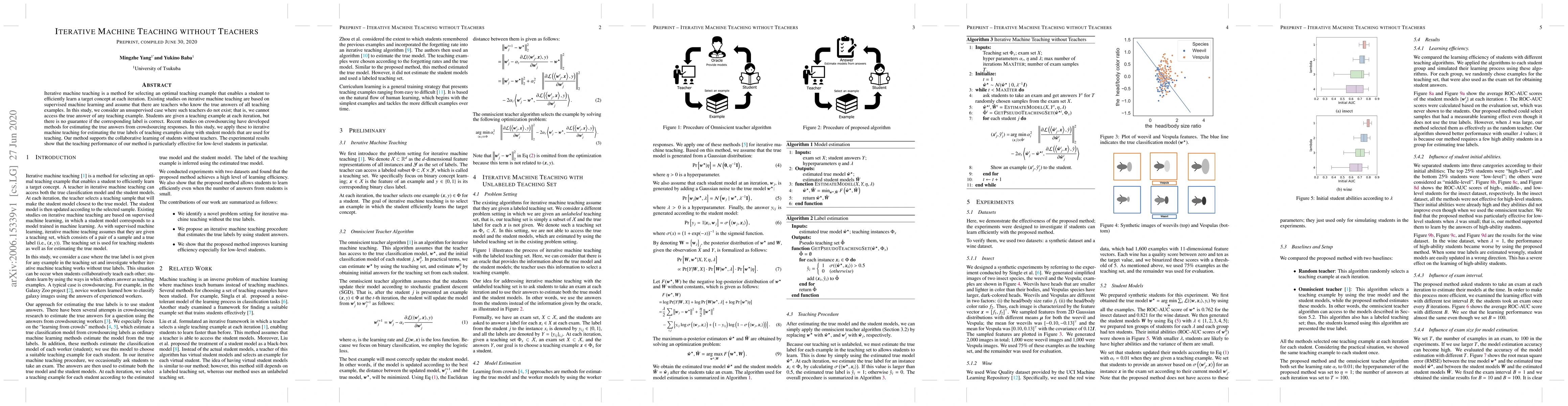 This paper proposes an iterative machine teaching method for unsupervised scenarios where true labels are unknown. It leverages crowdsourcing to estimate correct labels, enabling collaborative student learning without teachers, with effective results especially for novice learners.