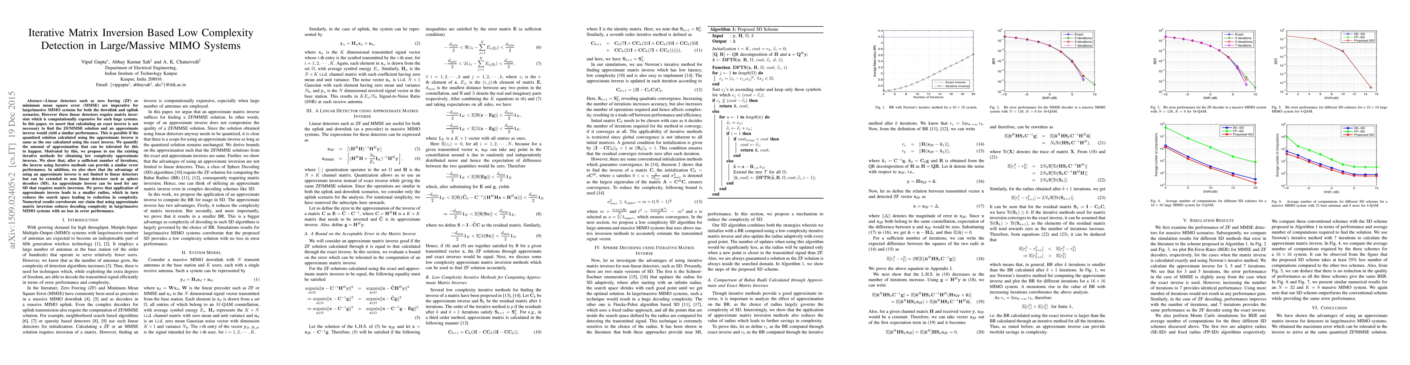 This paper proposes low complexity detection in large/massive MIMO systems using iterative matrix inversion to approximate the exact inverse, thereby reducing computational cost. It demonstrates that an approximate inverse can yield similar performance to exact inversion, especially in linear detectors and extends this benefit to non-linear detectors like sphere decoders, ultimately reducing decoding complexity without compromising error performance.