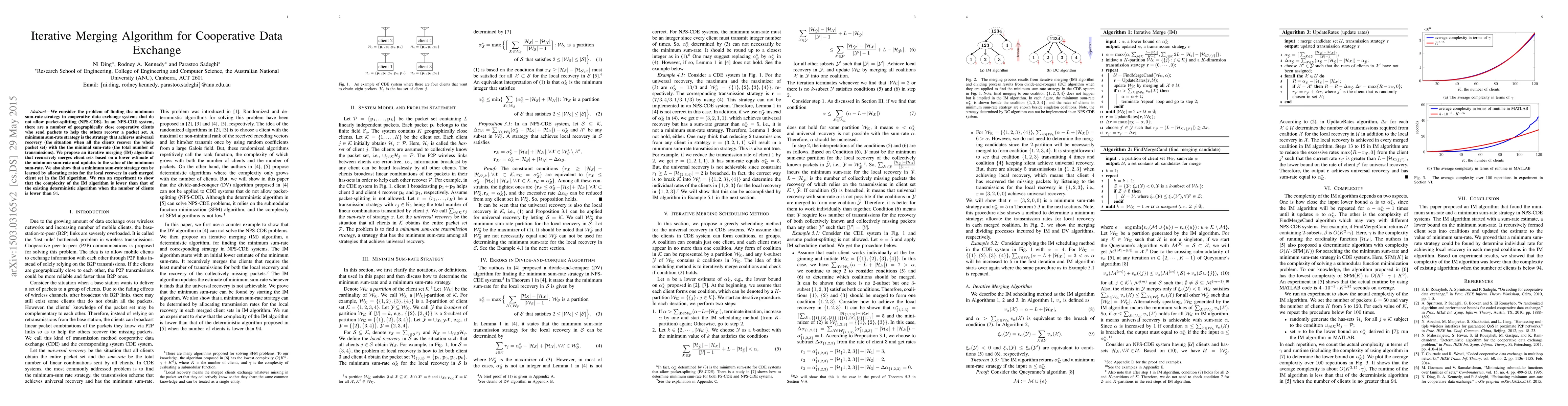 The paper proposes an iterative merging algorithm to find the minimum sum-rate strategy in non-packet-splitting cooperative data exchange systems, achieving universal recovery with minimal transmissions. Experimental results show that the algorithm's complexity is lower than existing methods for fewer than 94 clients.