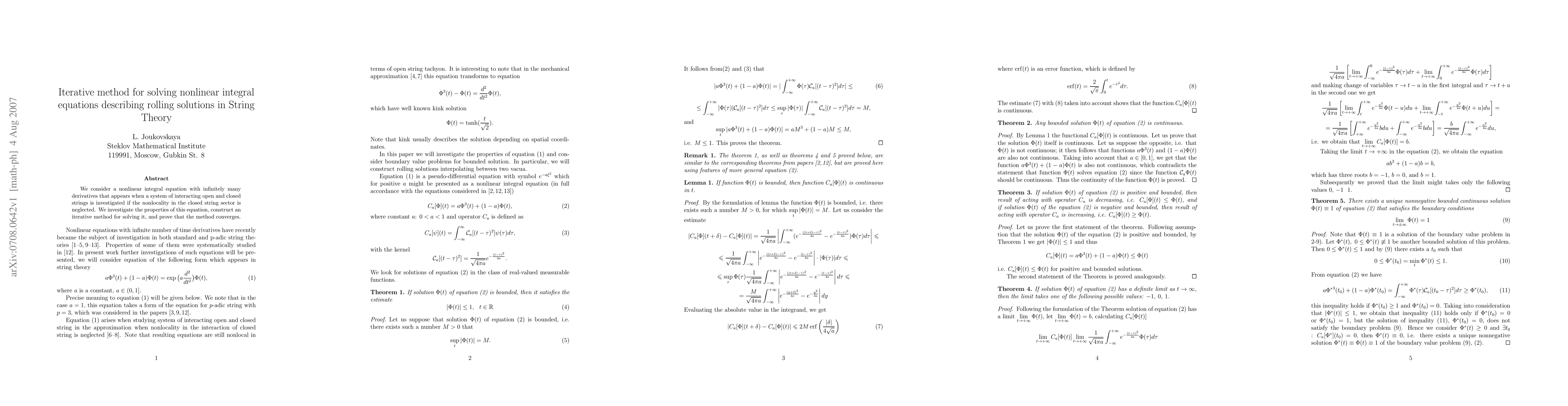 A new method for solving a nonlinear integral equation is presented to describe rolling solutions in String Theory, demonstrating convergence and providing insights into the system's properties.