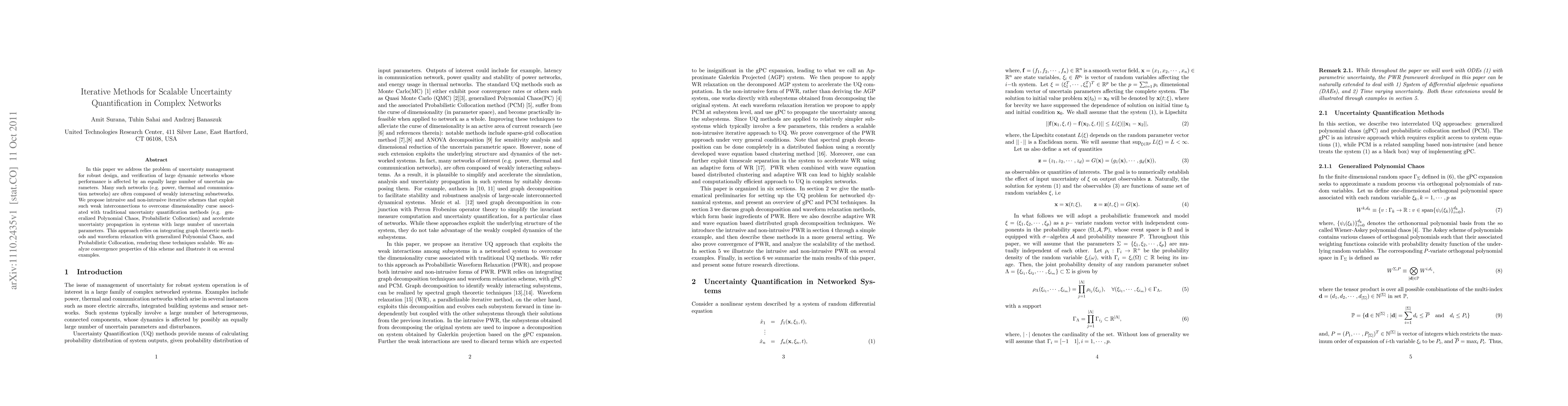 In this paper we address the problem of uncertainty management for robust design, and verification of large dynamic networks whose performance is affected by an equally large number of uncertain parameters. Many such networks (e.g. power, thermal and communication networks) are often composed of weakly interacting subnetworks. We propose intrusive and non-intrusive iterative schemes that exploit such weak interconnections to overcome dimensionality curse associated with traditional uncertainty quantification methods (e.g. generalized Polynomial Chaos, Probabilistic Collocation) and accelerate uncertainty propagation in systems with large number of uncertain parameters. This approach relies on integrating graph theoretic methods and waveform relaxation with generalized Polynomial Chaos, and Probabilistic Collocation, rendering these techniques scalable. We analyze convergence properties of this scheme and illustrate it on several examples.