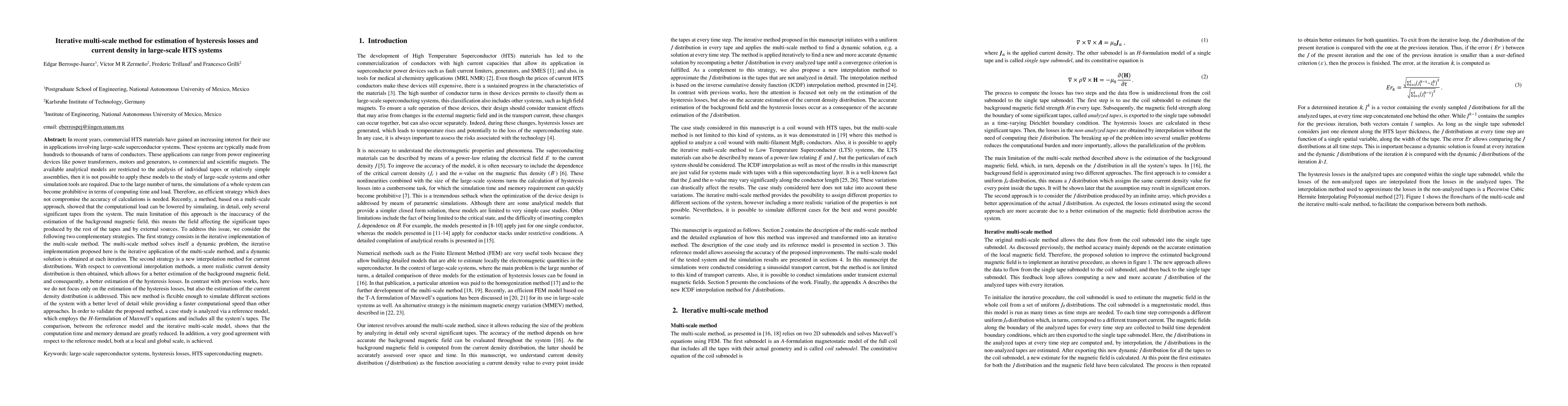 This paper proposes an iterative multi-scale method to accurately estimate current density and hysteresis losses in large-scale high-temperature superconductor (HTS) systems. The method employs an iterative application of the multi-scale approach and an advanced interpolation technique to improve the estimation of the background magnetic field and current density distribution, thereby enhancing the accuracy of hysteresis loss calculations.