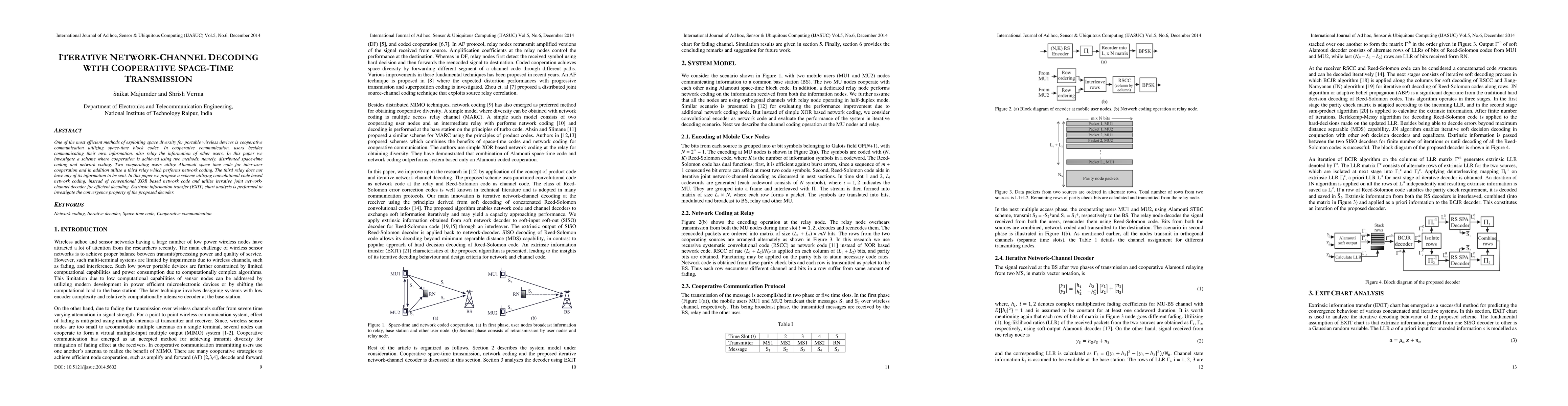 One of the most efficient methods of exploiting space diversity for portable wireless devices is cooperative communication utilizing space-time block codes. In cooperative communication, users besides communicating their own information, also relay the information of other users. In this paper we investigate a scheme where cooperation is achieved using two methods, namely, distributed space-time coding and network coding. Two cooperating users utilize Alamouti space time code for inter-user cooperation and in addition utilize a third relay which performs network coding. The third relay does not have any of its information to be sent. In this paper we propose a scheme utilizing convolutional code based network coding, instead of conventional XOR based network code and utilize iterative joint network-channel decoder for efficient decoding. Extrinsic information transfer (EXIT) chart analysis is performed to investigate the convergence property of the proposed decoder.