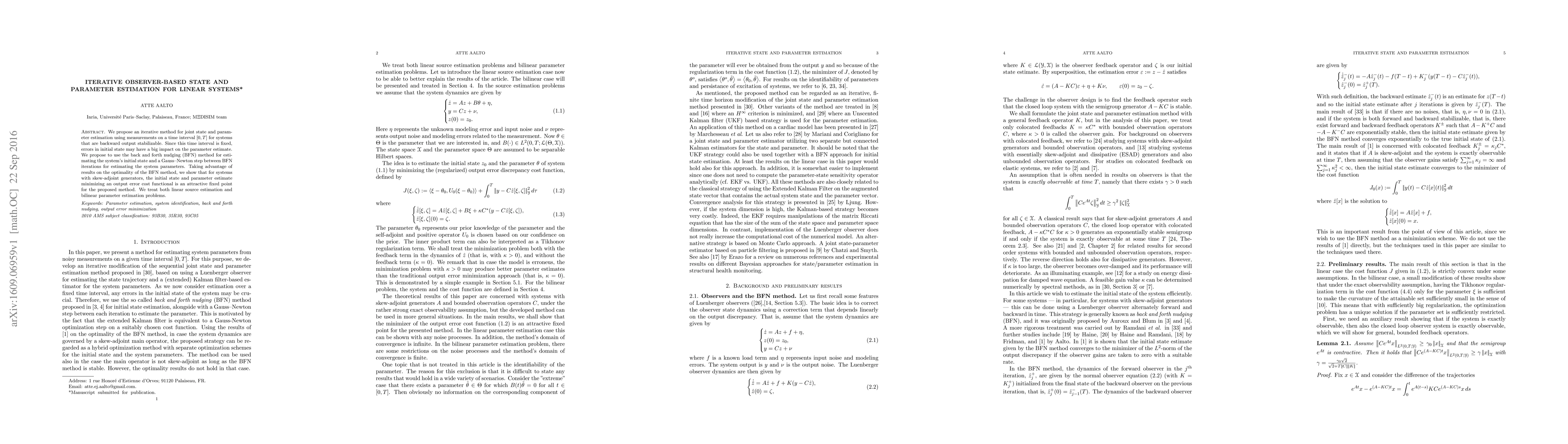 This paper proposes an iterative method combining back and forth nudging and Gauss-Newton steps to jointly estimate the state and parameters of linear systems over a fixed time interval [0,T]. The method aims to improve initial state estimates to minimize errors in parameter estimation, demonstrating its effectiveness for systems with skew-adjoint generators.