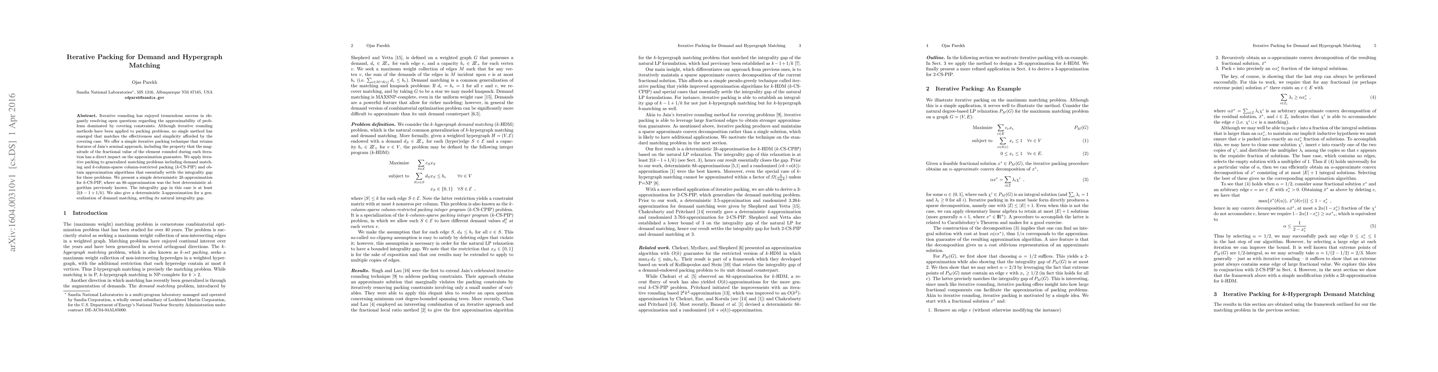 This paper presents an effective iterative packing technique for solving generalized matching problems, including demand matching and $k$-column-sparse column-restricted packing ($k$-CS-PIP). It achieves a $2k$-approximation for $k$-CS-PIP, improving upon the previous best deterministic algorithm, and settles the integrality gap for these problems.