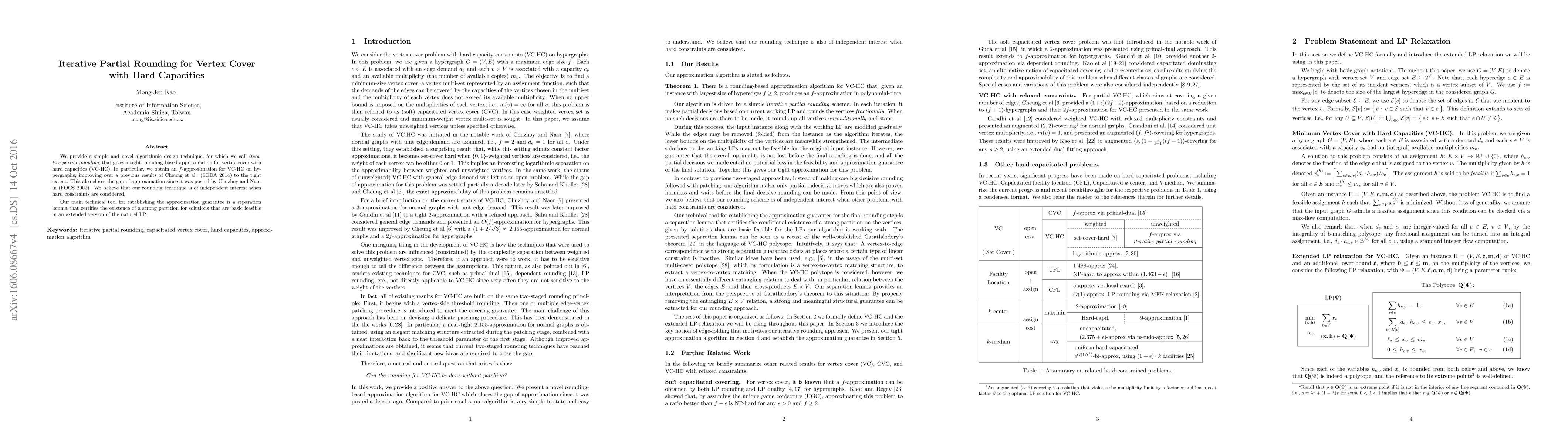 The paper introduces 'iterative partial rounding', a novel technique for approximating vertex cover with hard capacities (VC-HC) in hypergraphs, achieving a tight approximation factor. This method improves upon previous results, closing a long-standing approximation gap, and is considered of independent interest for handling hard constraints.