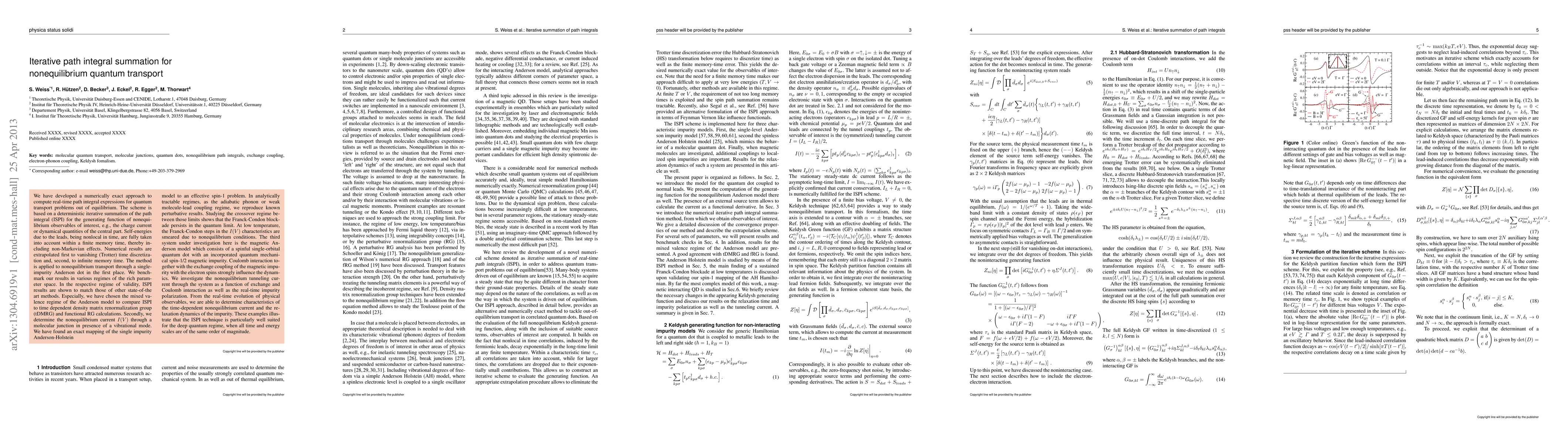 Iterative summation of path integrals to study quantum transport in molecular systems