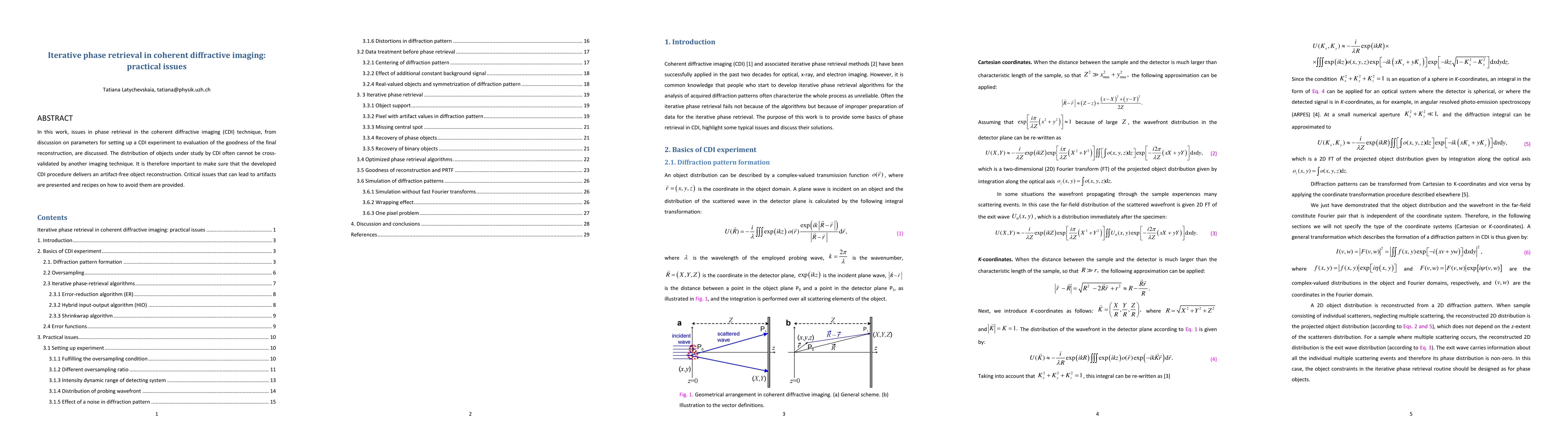 This paper addresses practical challenges in phase retrieval for coherent diffractive imaging (CDI), focusing on experimental setup parameters and methods to assess the quality of reconstructions. It highlights critical issues that can introduce artifacts and offers strategies to mitigate them.
