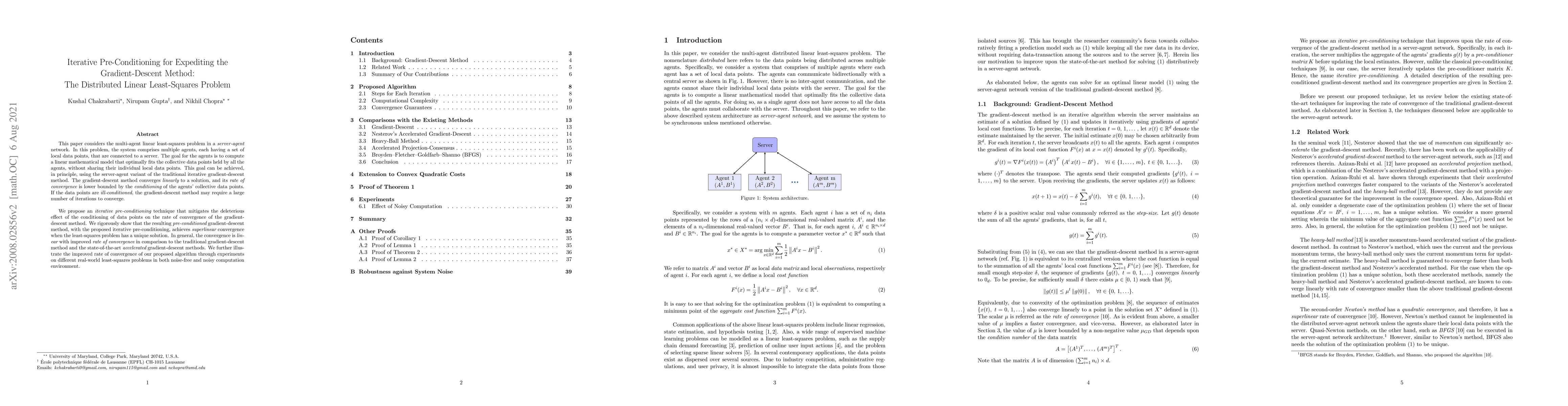 This paper proposes an iterative pre-conditioning technique to accelerate the gradient-descent method for solving distributed multi-agent linear least-squares problems. The method achieves superlinear convergence for well-conditioned data and improved linear convergence for ill-conditioned data compared to traditional and state-of-the-art methods.