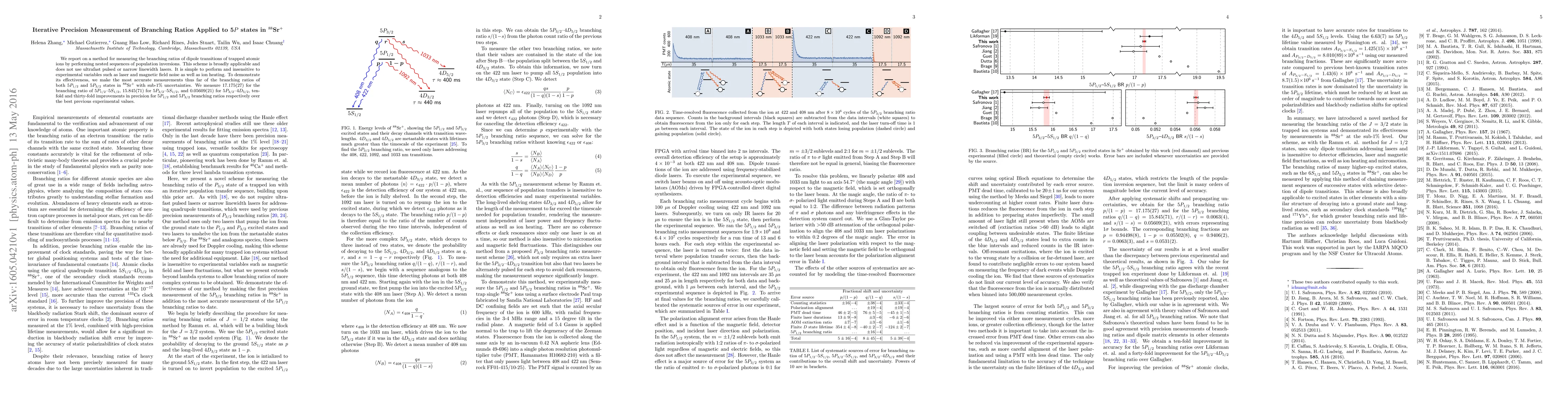 We report on a method for measuring the branching ratios of dipole transitions of trapped atomic ions by performing nested sequences of population inversions. This scheme is broadly applicable and does not use ultrafast pulsed or narrow linewidth lasers. It is simple to perform and insensitive to experimental variables such as laser and magnetic field noise as well as ion heating. To demonstrate its effectiveness, we make the most accurate measurements thus far of the branching ratios of both 5P1/2 and 5P3/2 states in 88Sr+ with sub-1% uncertainties. We measure 17.175(27) for the branching ratio of 5P1/2-5S1/2, 15.845(71) for 5P3/2-5S1/2, and 0.05609(21) for 5P3/2-4D5/2, ten- fold and thirty-fold improvements in precision for 5P1/2 and 5P3/2 branching ratios respectively over the best previous experimental values.