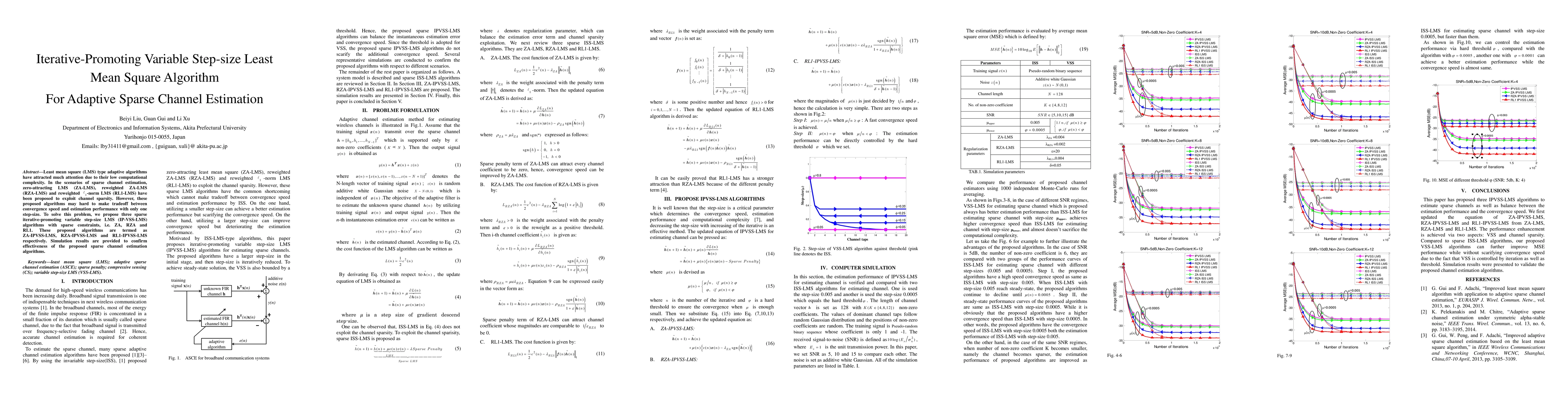 The paper proposes three adaptive sparse channel estimation algorithms—ZA-IPVSS-LMS, RZA-IPVSS-LMS, and RL1-IPVSS-LMS—that use iterative-promoting variable step-sizes to balance convergence speed and estimation performance, enhancing the traditional LMS approaches. Simulation results validate the effectiveness of these novel algorithms.