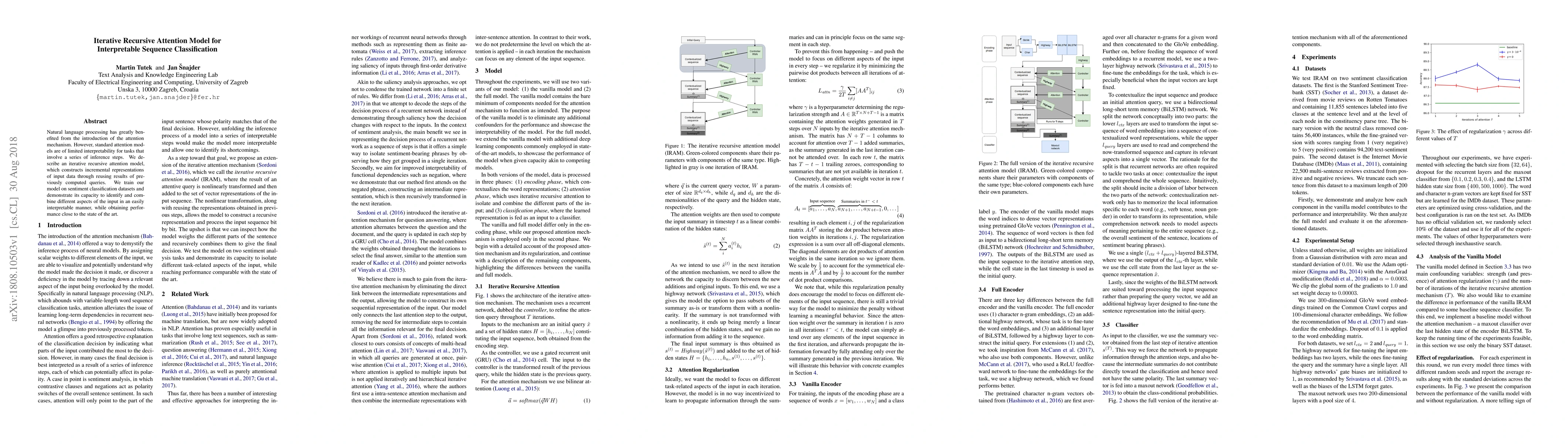 This paper introduces an iterative recursive attention model for sequence classification, enhancing interpretability by incrementally constructing representations through reused query results. The model achieves state-of-the-art performance on sentiment classification while providing clear insights into how different input aspects are combined.