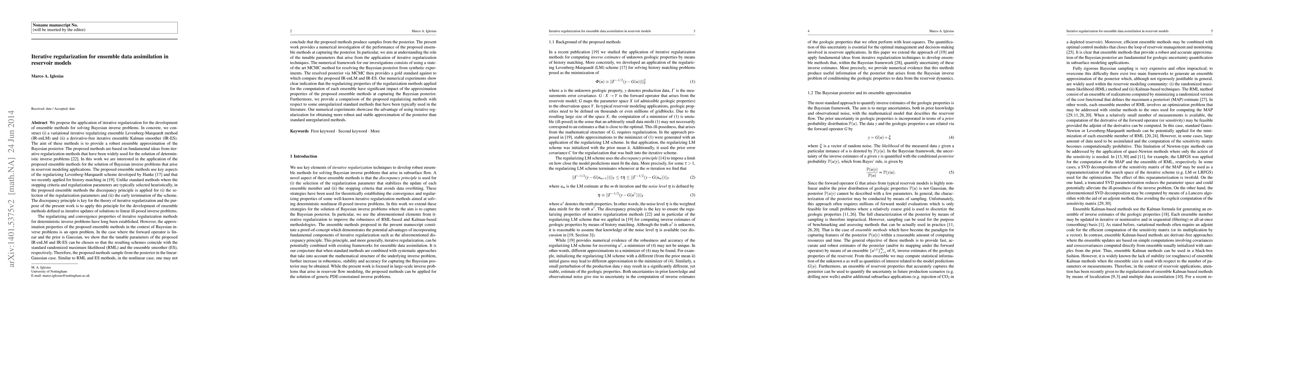 Researchers developed two ensemble methods for solving Bayesian inverse problems in reservoir modeling, achieving robust approximations of the posterior with careful regularization parameter selection.