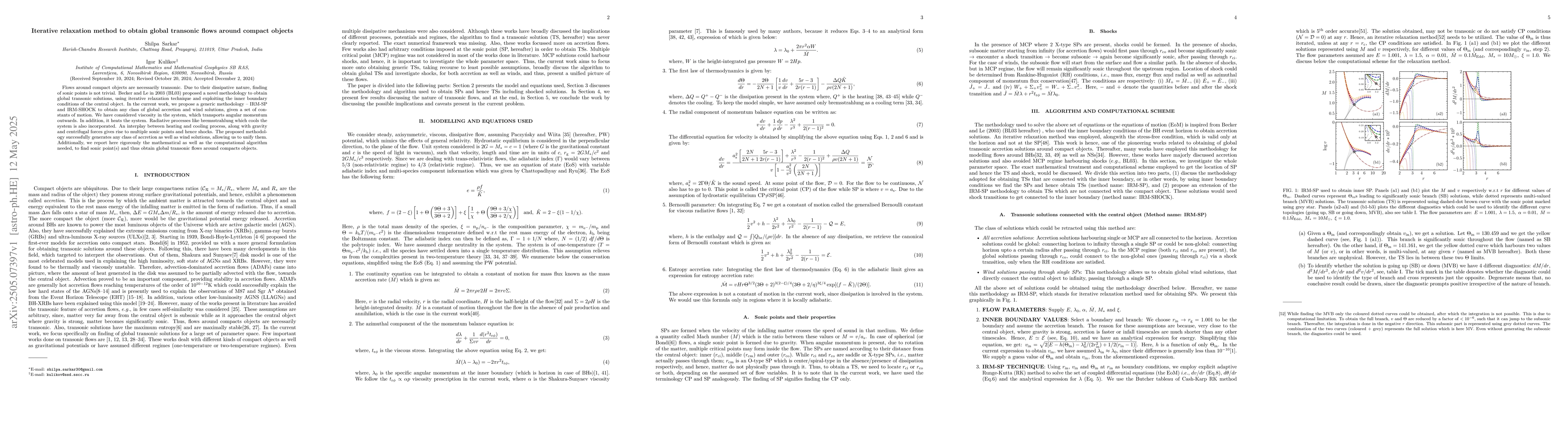 The proposed IRM-SP and IRM-SHOCK methodologies extend and refine previous work by Becker and Le (2003) by incorporating viscosity, heating, and cooling, and providing a rigorous algorithmic approach to find sonic points and global transonic flows, thereby unifying accretion and wind solutions.