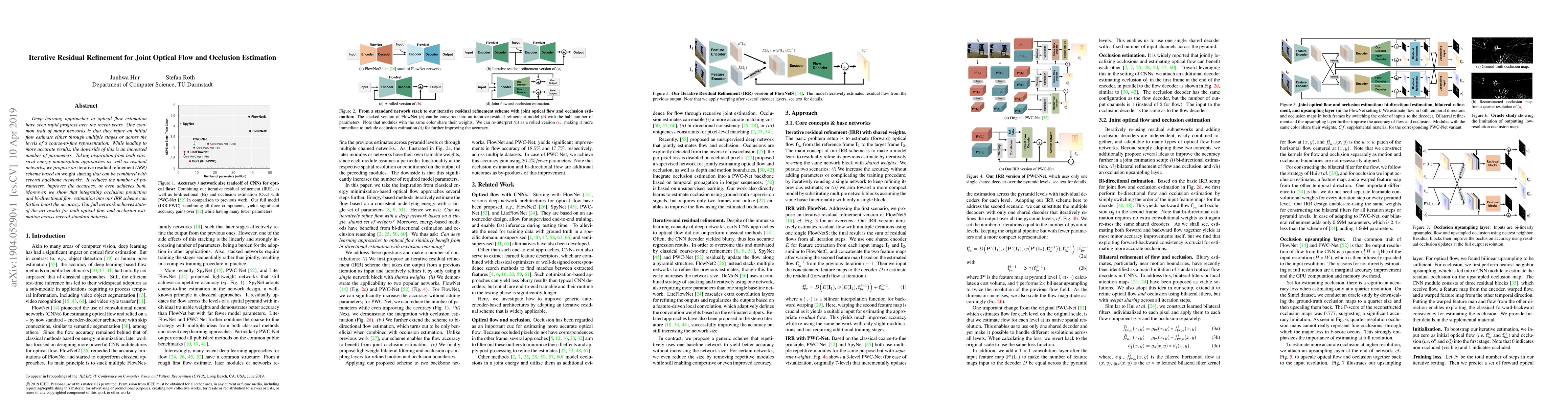 This paper proposes an iterative residual refinement (IRR) scheme for joint optical flow and occlusion estimation, which reduces parameters while improving accuracy. The IRR scheme integrates occlusion prediction and bi-directional flow estimation, achieving state-of-the-art results on standard datasets.