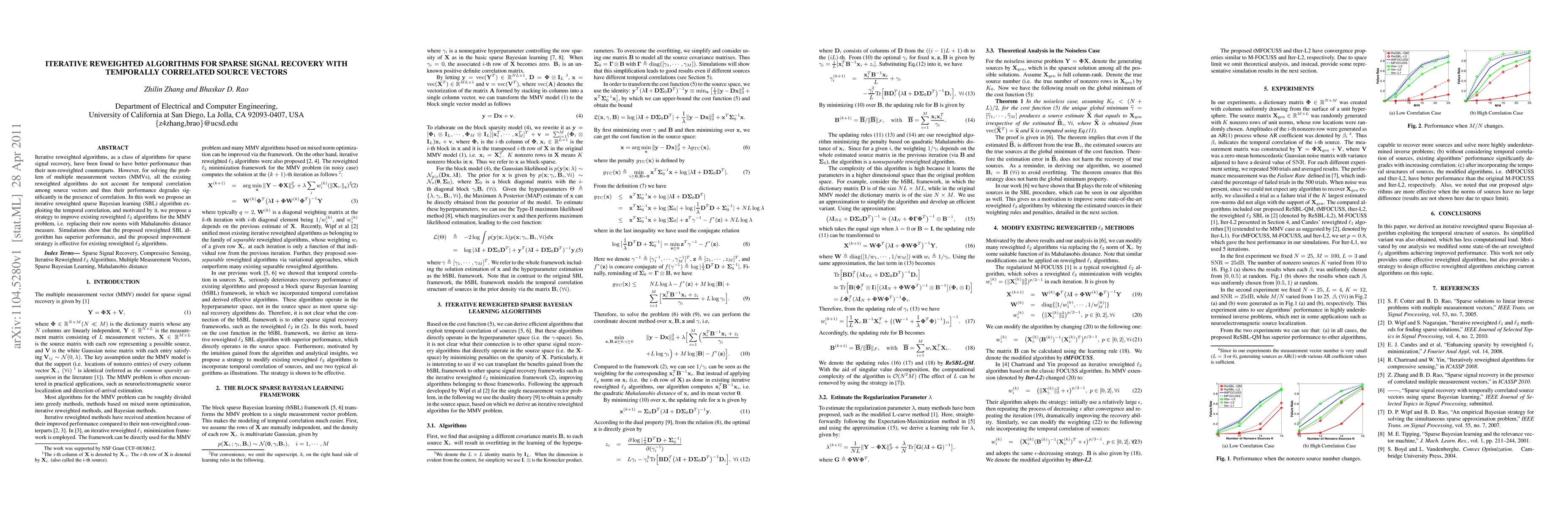 This paper proposes an iterative reweighted sparse Bayesian learning (SBL) algorithm that leverages temporal correlations among source vectors for sparse signal recovery. It also suggests an enhancement strategy for existing reweighted $\ell_2$ algorithms by replacing row norms with Mahalanobis distance, demonstrating superior performance in simulations.