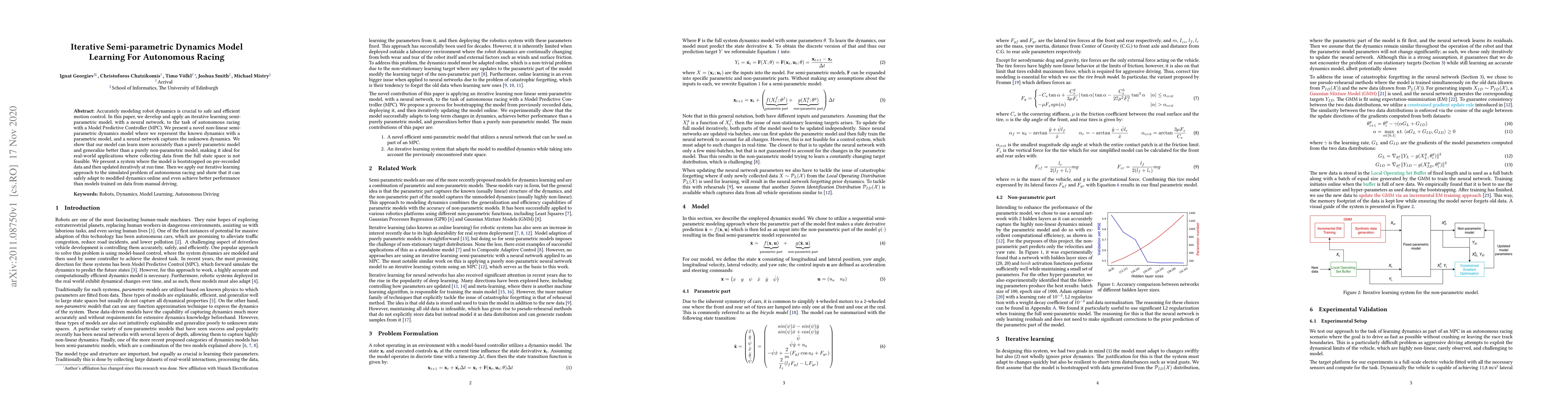 This paper proposes an iterative semi-parametric dynamics model using a neural network to enhance autonomous racing performance. The model combines parametric and neural network components to improve accuracy and generalization, demonstrating superior performance in adapting to modified dynamics compared to traditional models.