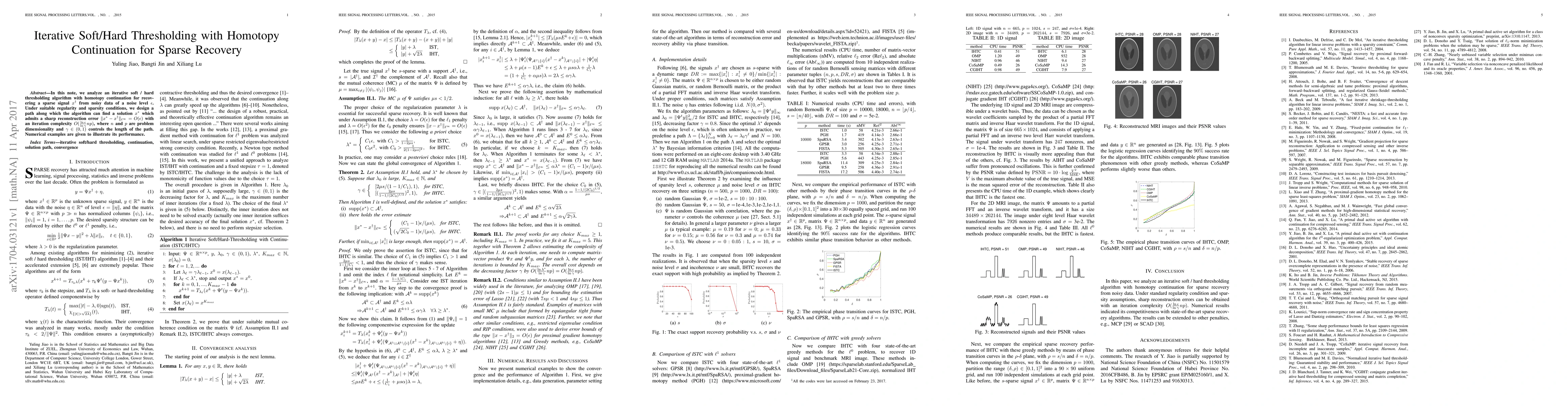 This paper proposes an iterative soft/hard thresholding algorithm with homotopy continuation for sparse signal recovery, achieving a sharp reconstruction error of $O(\epsilon)$ under suitable conditions, with an iteration complexity of $O(\frac{\ln \epsilon}{\ln \gamma}np)$. Numerical examples demonstrate its effectiveness.
