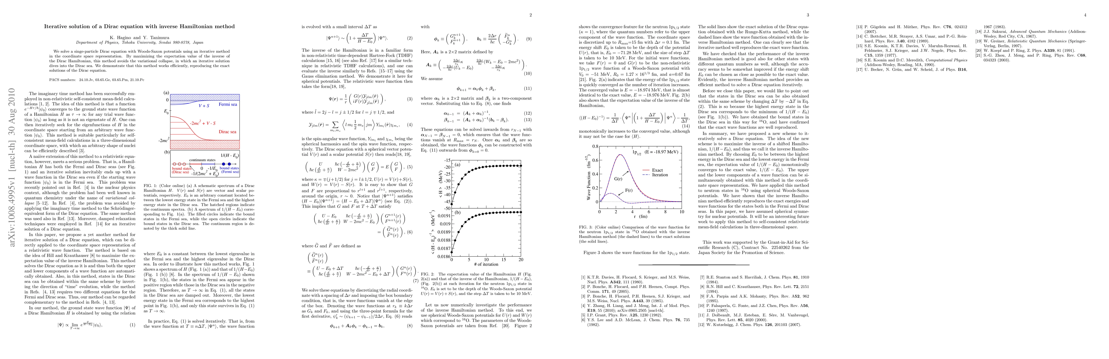 This paper presents an iterative method to solve the Dirac equation with Woods-Saxon potentials, avoiding variational collapse by maximizing the expectation value of the inverse Hamiltonian, which efficiently reproduces exact solutions. The method demonstrates effectiveness in coordinate space representation.