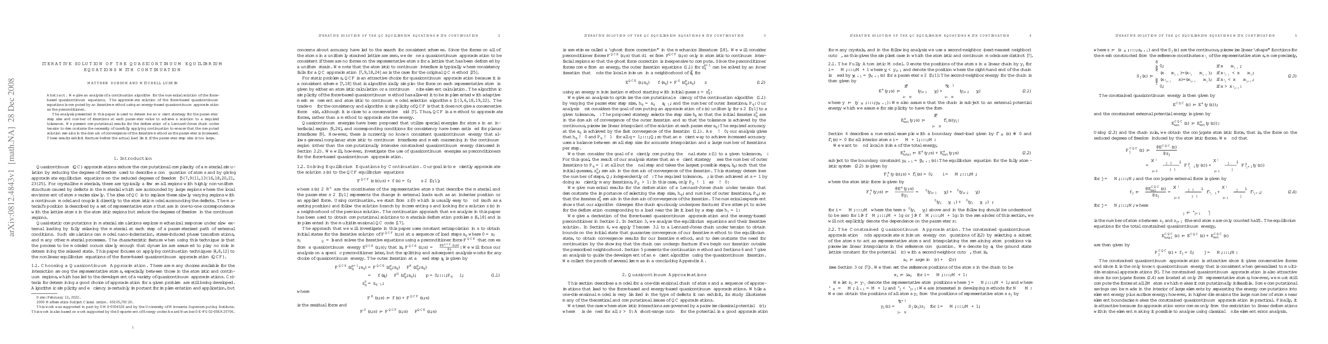 This paper analyzes a continuation algorithm for solving quasicontinuum equilibrium equations iteratively, employing an energy-based quasicontinuum approximation as a preconditioner. It determines optimal step sizes and iteration counts to achieve required tolerances, demonstrating the necessity of careful continuation through computational results on a Lennard-Jones chain under tension.