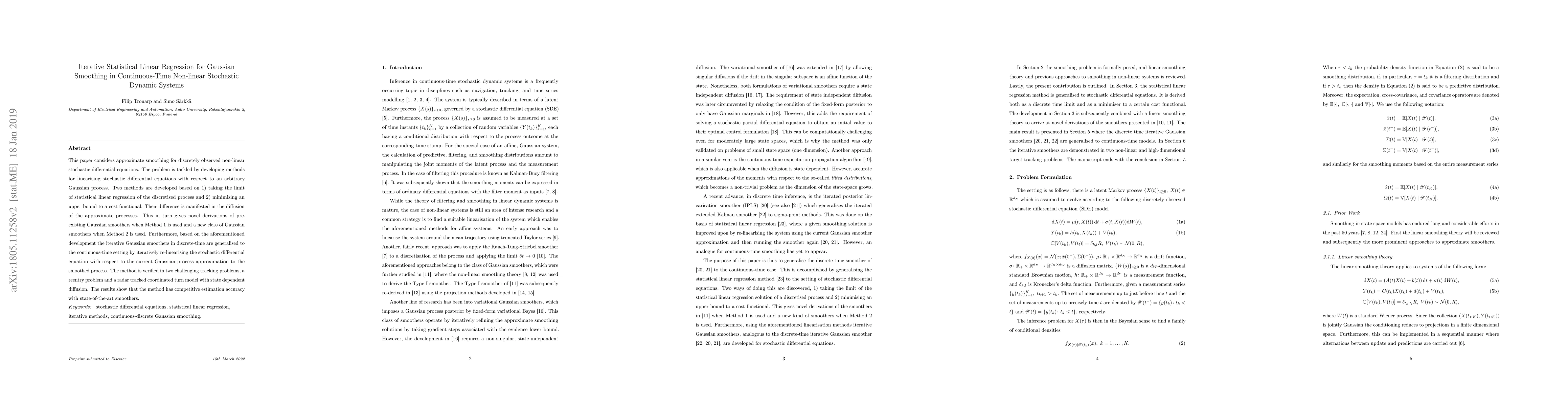 This paper develops two methods for approximate smoothing in non-linear stochastic dynamic systems, improving estimation accuracy over state-of-the-art smoothers.