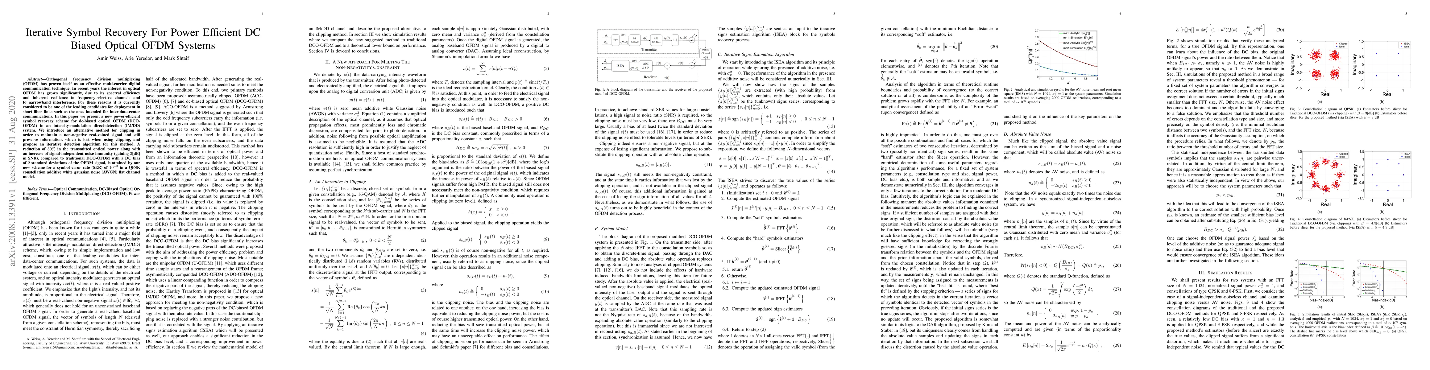 A new power-efficient symbol recovery scheme for DC-biased optical OFDM improves signal quality while reducing transmitted power, leading to a 50% reduction in optical power and a 3dB increase in noise immunity.