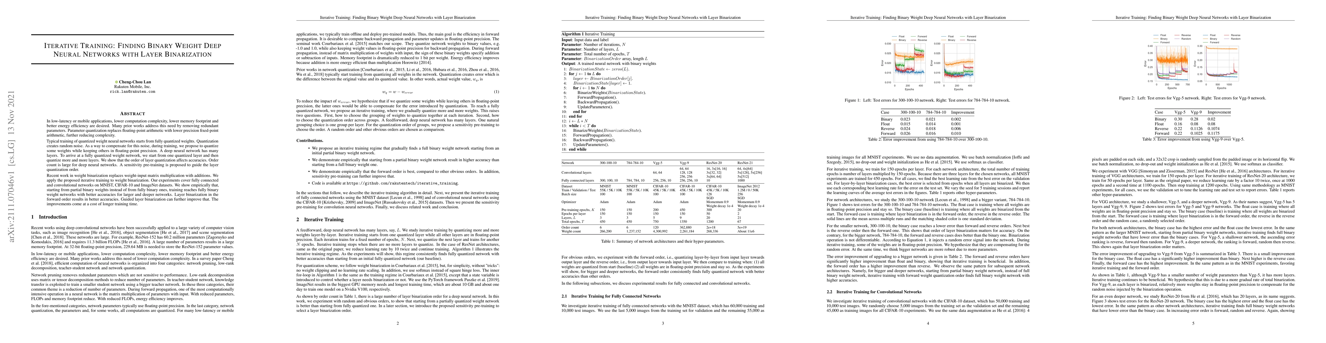 This paper proposes an iterative training method to achieve better accuracy in fully binary weight deep neural networks by starting with partial binary weights and gradually quantizing more layers. The order of layer quantization significantly impacts performance, leading to a sensitivity pre-training approach to guide the process. Experiments on various datasets show that this method improves accuracy compared to fully binarized initialization, though at the expense of longer training times.