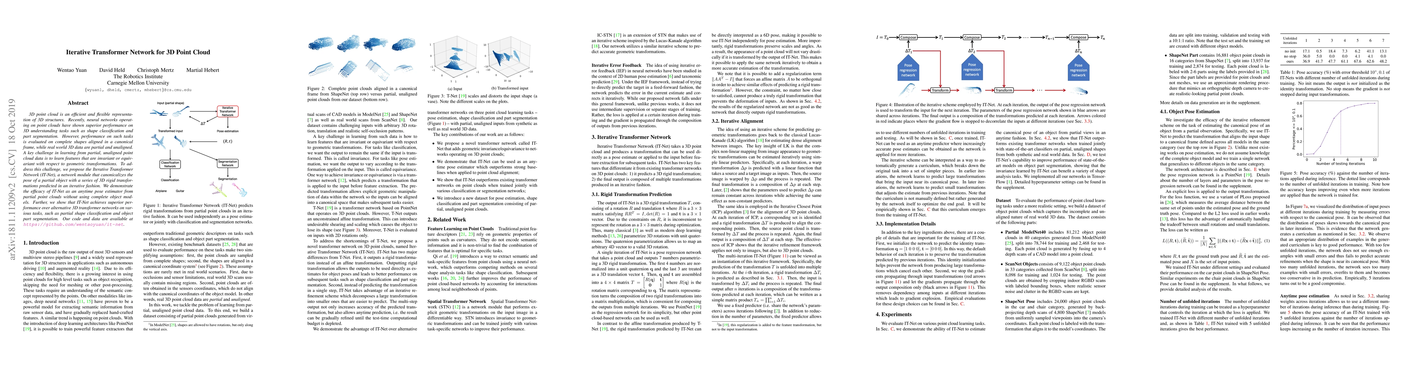 The Iterative Transformer Network (IT-Net) addresses the challenge of learning from partial, unaligned 3D point clouds by canonicalizing object poses through iterative 3D rigid transformations, achieving superior performance in tasks like partial shape classification and object part segmentation compared to alternative 3D transformer networks.