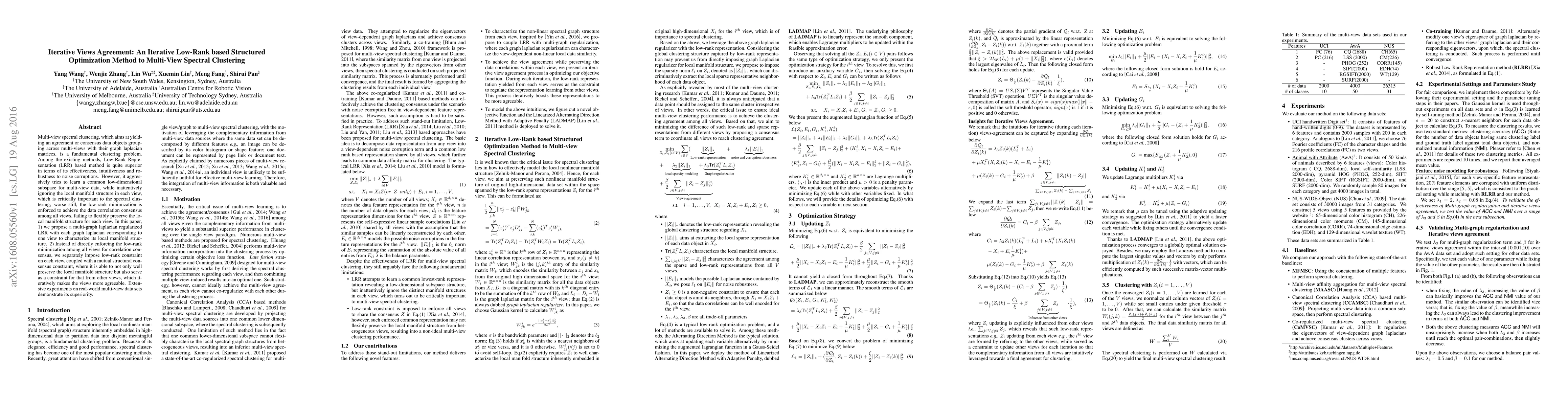 This paper proposes an iterative low-rank based structured optimization method for multi-view spectral clustering that separately imposes low-rank constraints on each view while incorporating a mutual structural consensus constraint to preserve local manifold structures and achieve view agreement. Experiments show its superior performance on real-world datasets.