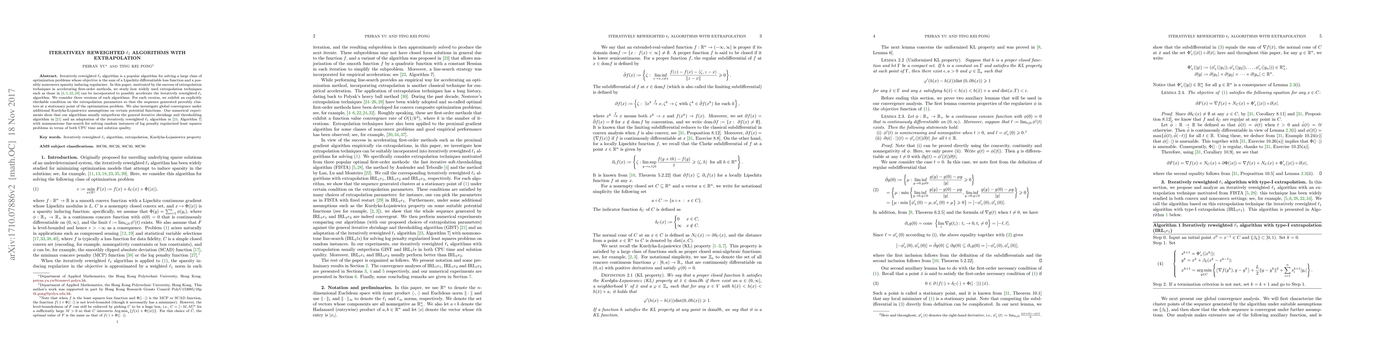 This paper proposes incorporating extrapolation techniques into iteratively reweighted $\ell_1$ algorithms to potentially accelerate their convergence. It presents three versions of the accelerated algorithm, providing conditions for their convergence and demonstrating their effectiveness through numerical experiments.