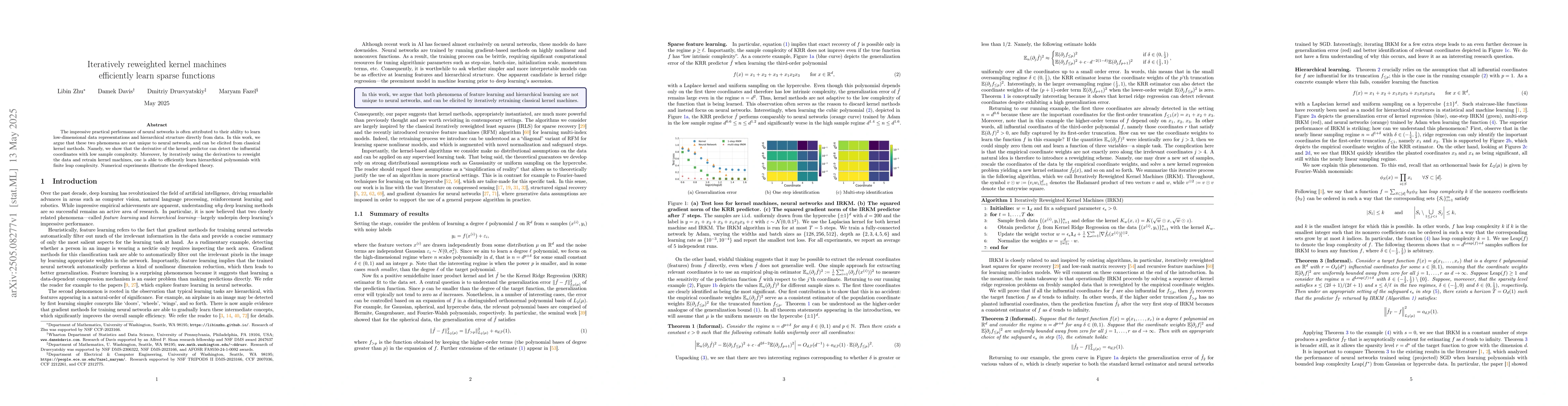 This research demonstrates that classical kernel methods can effectively identify important data features and learn complex hierarchical functions by iteratively reweighting data based on derivatives, offering an alternative to neural networks' capabilities. The approach improves efficiency and interpretability in learning low-dimensional structures from data.
