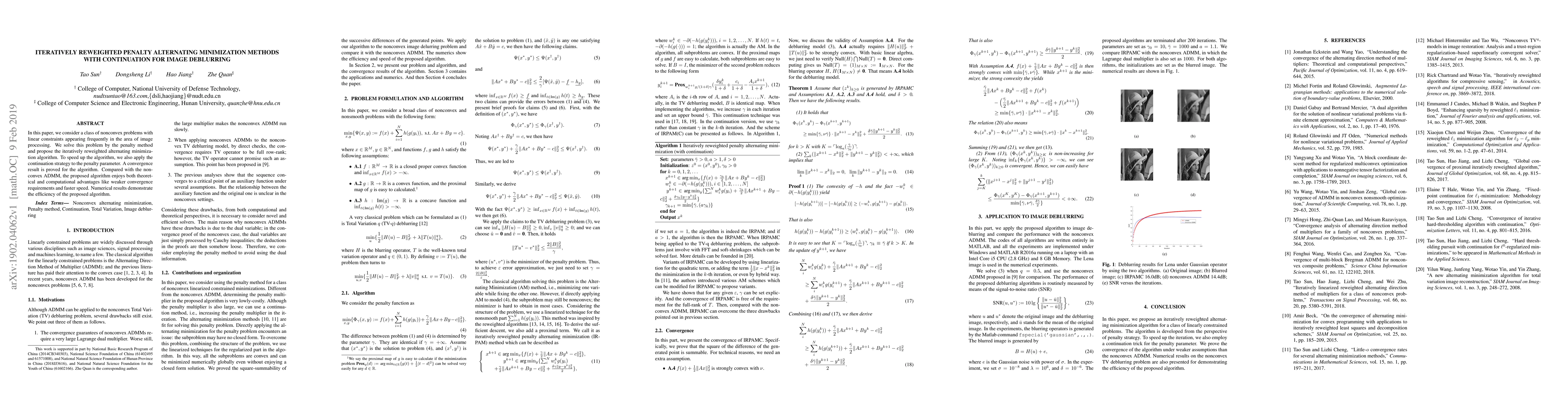 This paper proposes an iteratively reweighted alternating minimization algorithm with a continuation strategy for solving nonconvex image deblurring problems. The method demonstrates theoretical and computational advantages over nonconvex ADMM, including faster speed and weaker convergence requirements, as shown through numerical results.