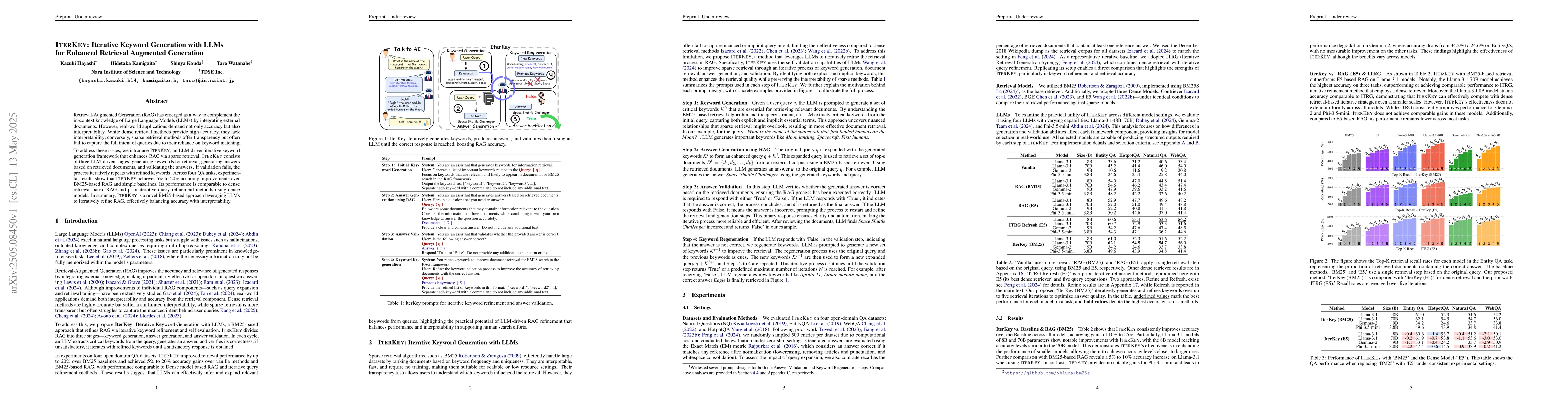 IterKey introduces an iterative keyword generation framework leveraging LLMs to refine RAG, balancing accuracy and interpretability using sparse retrieval.