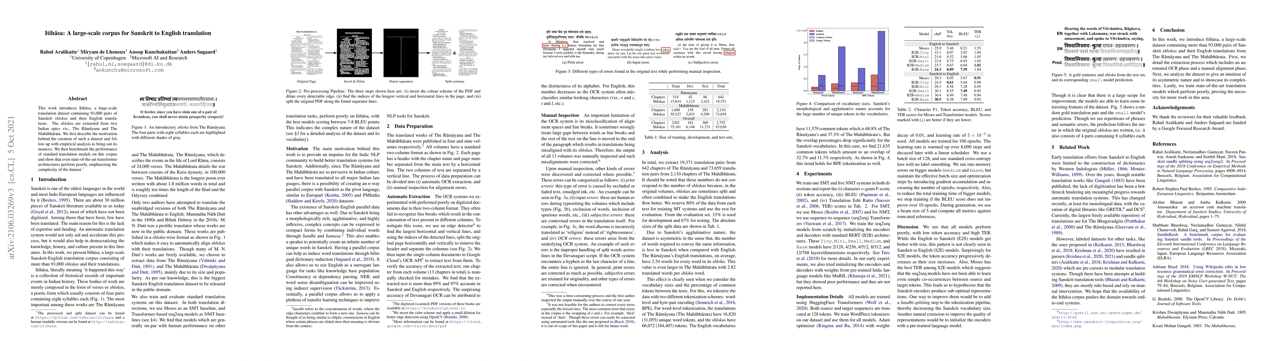 This paper presents Itihasa, a substantial dataset of 93,000 Sanskrit shlokas from The Ramayana and The Mahabharata paired with their English translations, highlighting the challenges in translating such complex texts and benchmarking the performance of modern translation models on it. Despite using advanced transformer architectures, the models show poor performance, underscoring the dataset's complexity.