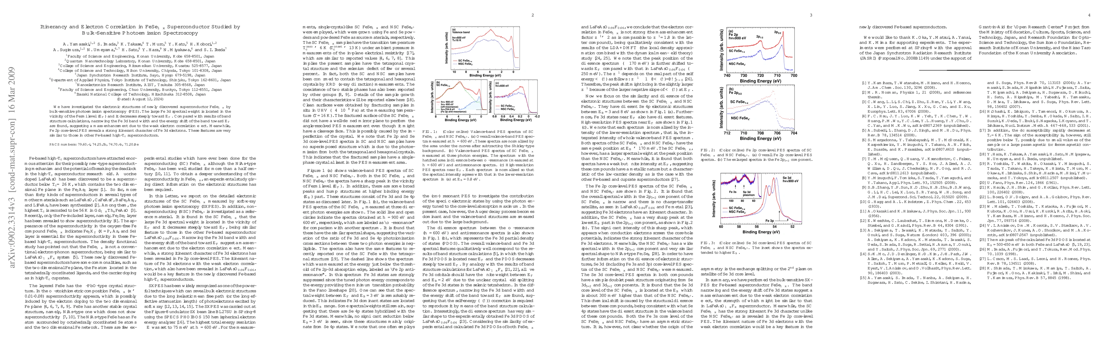 We have investigated the electronic structures of newly discovered superconductor FeSe1-x by bulk-sensitive photoemission spectroscopy (PES). The large Fe 3d spectral weight is located in the vicinity of the Fermi level (EF) and it decreases steeply toward EF . Compared with results of band structure calculations, narrowing the Fe 3d band width and the energy shift of the band toward EF are found, suggesting a mass enhancement due to the weak electron correlation effect. Meanwhile, Fe 2p core-level PES reveals a strong itinerant character of Fe 3d electrons. These features are very similar to those in other Fe-based high-Tc superconductors.