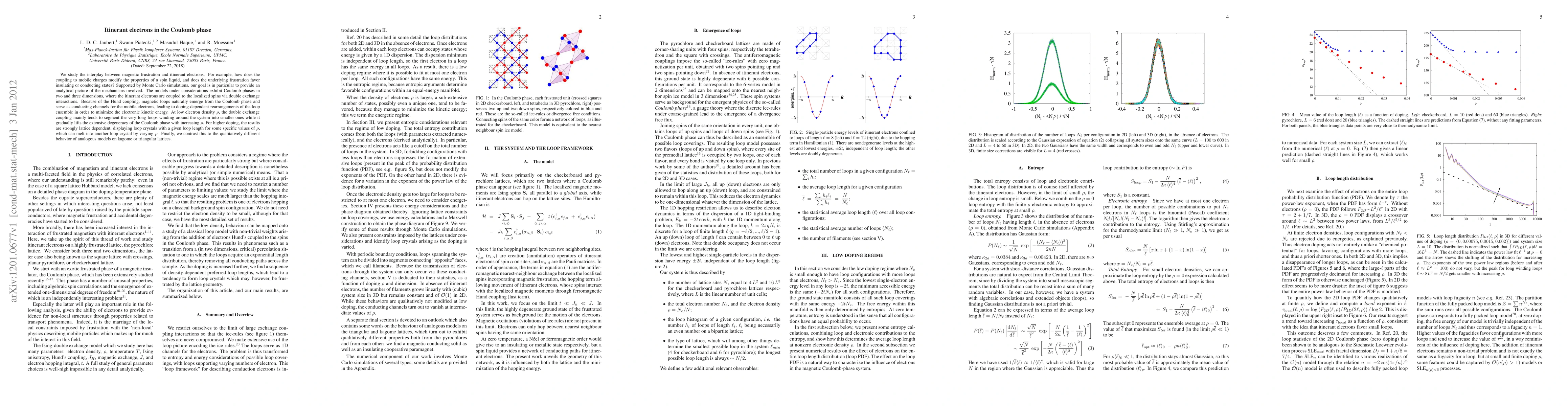 We study the interplay between magnetic frustration and itinerant electrons. For example, how does the coupling to mobile charges modify the properties of a spin liquid, and does the underlying frustration favor insulating or conducting states? Supported by Monte Carlo simulations, our goal is in particular to provide an analytical picture of the mechanisms involved. The models under considerations exhibit Coulomb phases in two and three dimensions, where the itinerant electrons are coupled to the localized spins via double exchange interactions. Because of the Hund coupling, magnetic loops naturally emerge from the Coulomb phase and serve as conducting channels for the mobile electrons, leading to doping-dependent rearrangements of the loop ensemble in order to minimize the electronic kinetic energy. At low electron density \rho, the double exchange coupling mainly tends to segment the very long loops winding around the system into smaller ones while it gradually lifts the extensive degeneracy of the Coulomb phase with increasing \rho. For higher doping, the results are strongly lattice dependent, displaying loop crystals with a given loop length for some specific values of \rho, which can melt into another loop crystal by varying \rho. Finally, we contrast this to the qualitatively different behavior of analogous models on kagome or triangular lattices.
