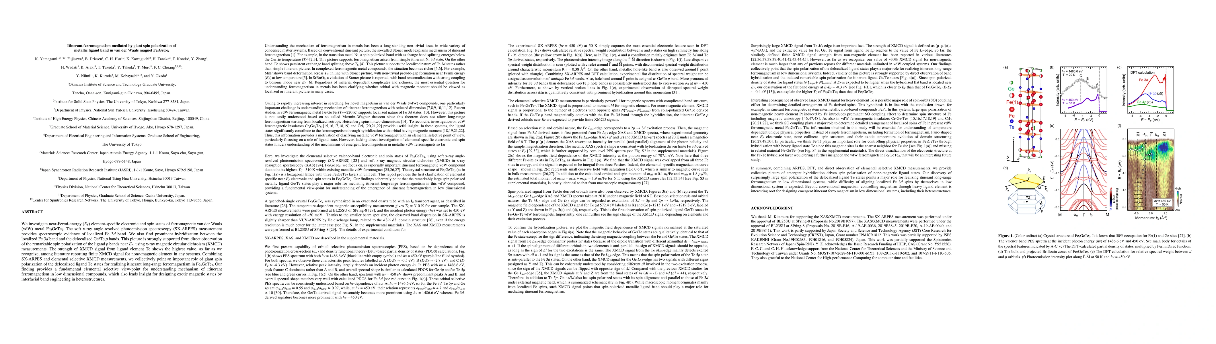 This study reveals the role of giant spin polarization in the itinerant ferromagnetism of the van der Waals magnet Fe5GeTe2, using spectroscopic and magnetic circular dichroism measurements. The findings highlight the significant contribution of the ligand Te p bands' spin polarization to the long-range ferromagnetism, offering insights into the mechanism of ferromagnetism in low-dimensional compounds.