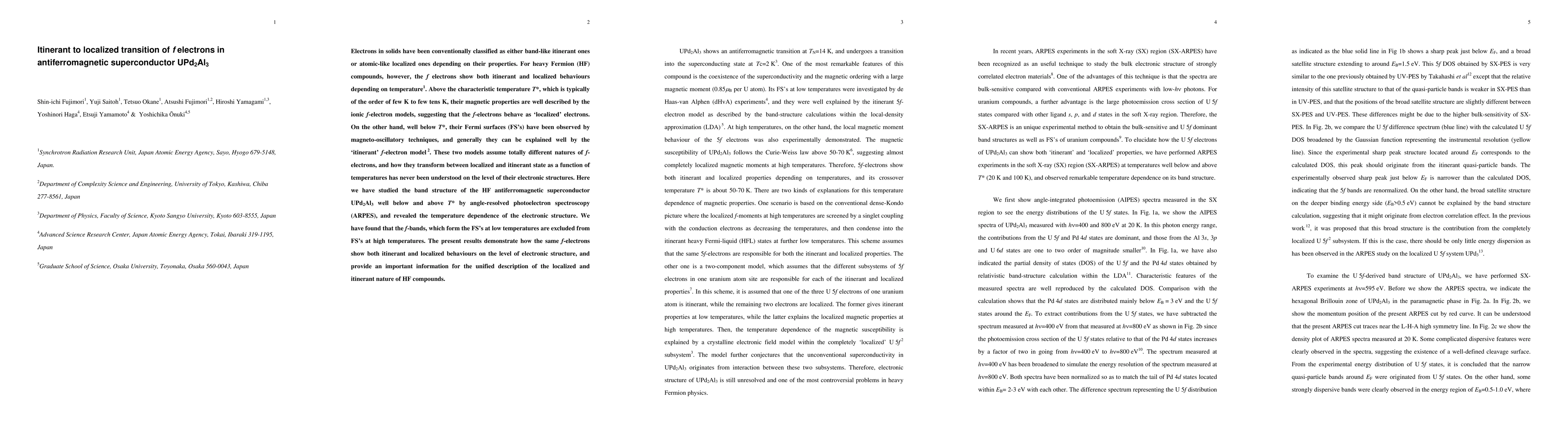 This research investigates the temperature-dependent behavior of f-electrons in the heavy Fermion antiferromagnetic superconductor UPd2Al3 using ARPES. It reveals a transition from itinerant f-electron behavior at low temperatures to localized behavior at higher temperatures, providing insight into the electronic structure of heavy Fermion compounds.