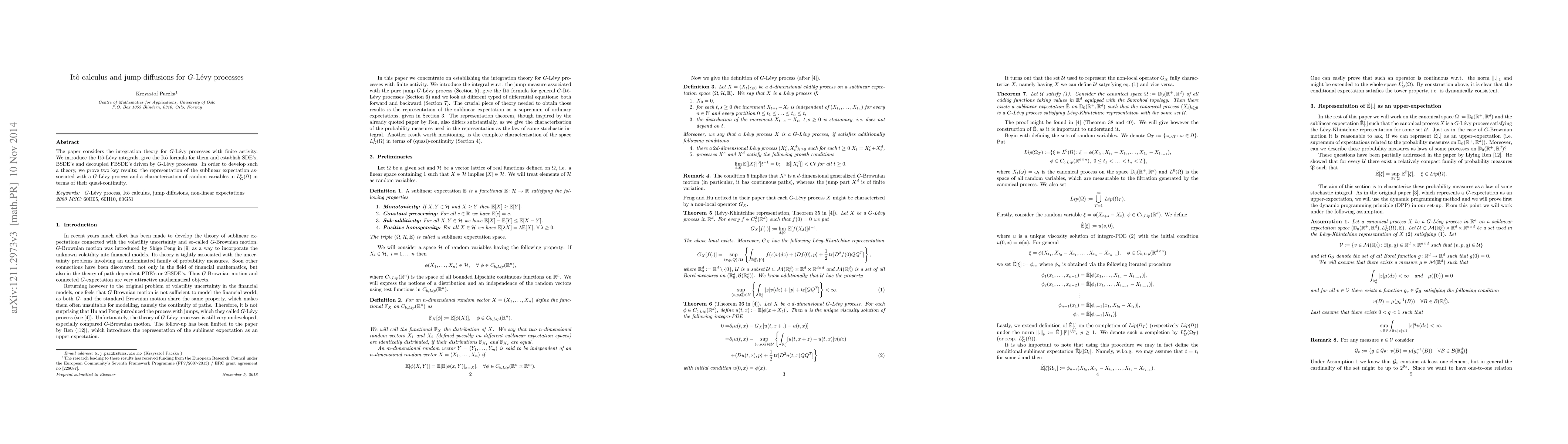 The paper considers the integration theory for $G$-L\'evy processes with finite activity. We introduce the It\^o-L\'evy integrals, give the It\^o formula for them and establish SDE's, BSDE's and decoupled FBSDE's driven by $G$-L\'evy processes. In order to develop such a theory, we prove two key results: the representation of the sublinear expectation associated with a $G$-L\'evy process and a characterization of random variables in $L^p_G(\Omega)$ in terms of their quasi-continuity.