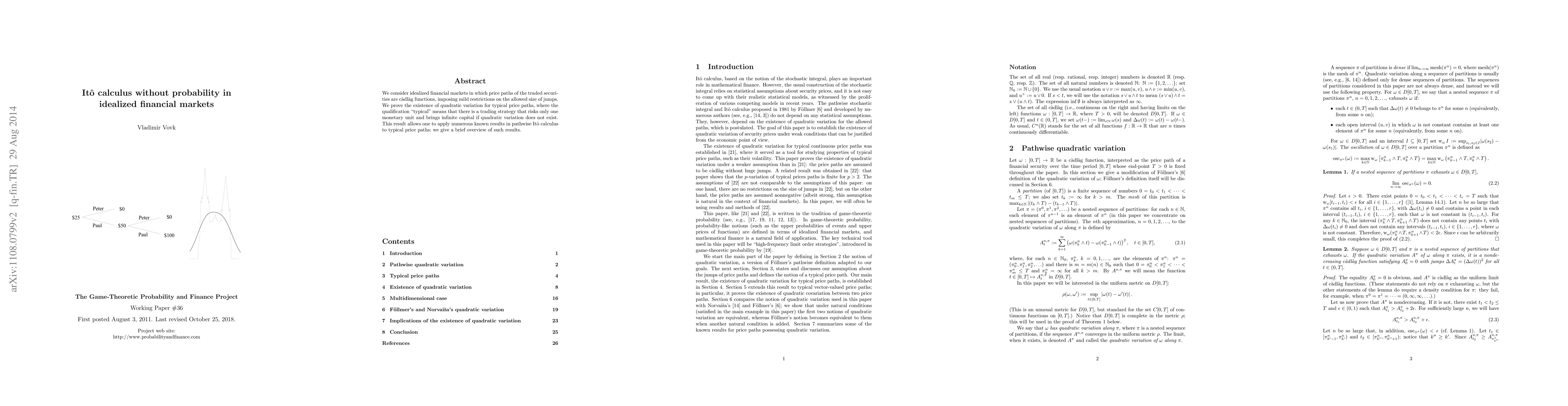 Researchers prove that quadratic variation exists for typical price paths in idealized financial markets, allowing known Ito calculus results to be applied.