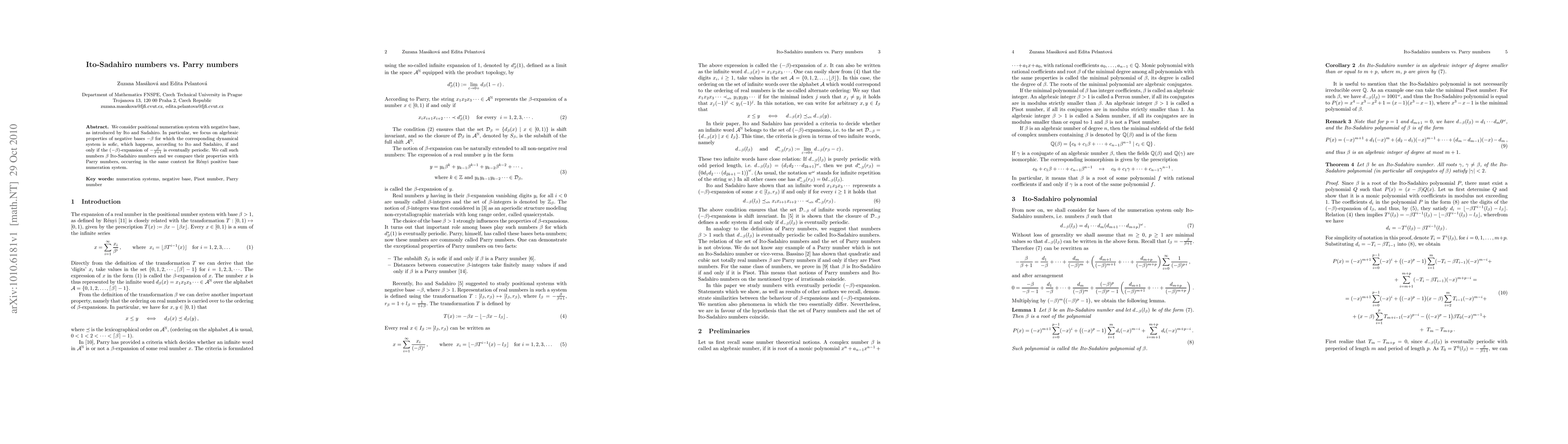 We consider positional numeration system with negative base, as introduced by Ito and Sadahiro. In particular, we focus on algebraic properties of negative bases $-\beta$ for which the corresponding dynamical system is sofic, which happens, according to Ito and Sadahiro, if and only if the $(-\beta)$-expansion of $-\frac{\beta}{\beta+1}$ is eventually periodic. We call such numbers $\beta$ Ito-Sadahiro numbers and we compare their properties with Parry numbers, occurring in the same context for R\'enyi positive base numeration system.