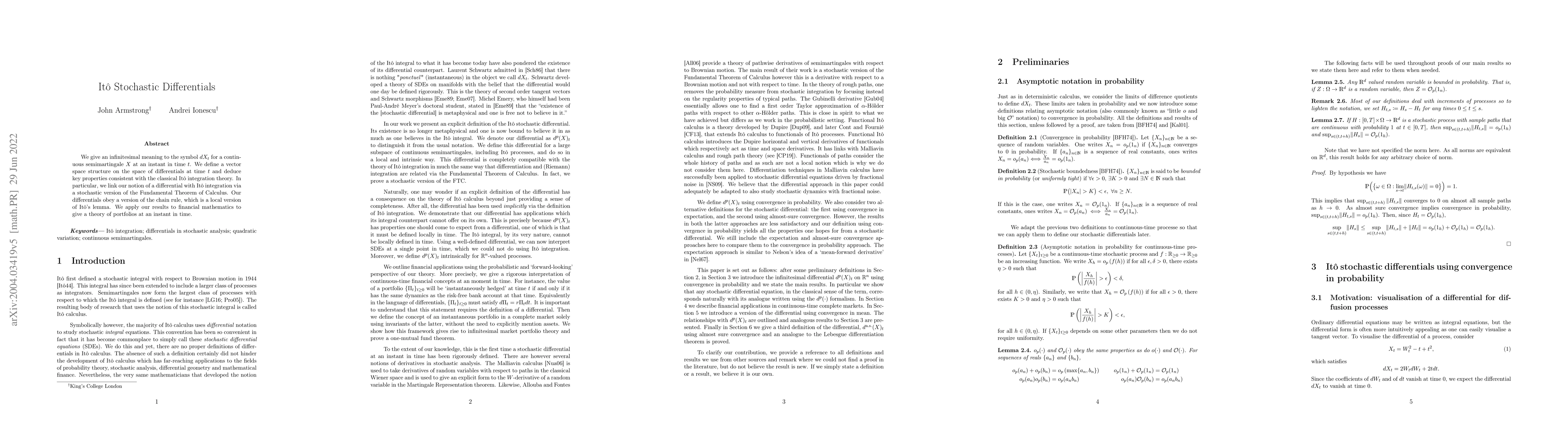 We give an infinitesimal meaning to the symbol $dX_t$ for a continuous semimartingale $X$ at an instant in time $t$. We define a vector space structure on the space of differentials at time $t$ and deduce key properties consistent with the classical It\^o integration theory. In particular, we link our notion of a differential with It\^o integration via a stochastic version of the Fundamental Theorem of Calculus. Our differentials obey a version of the chain rule, which is a local version of It\^o's lemma. We apply our results to financial mathematics to give a theory of portfolios at an instant in time.