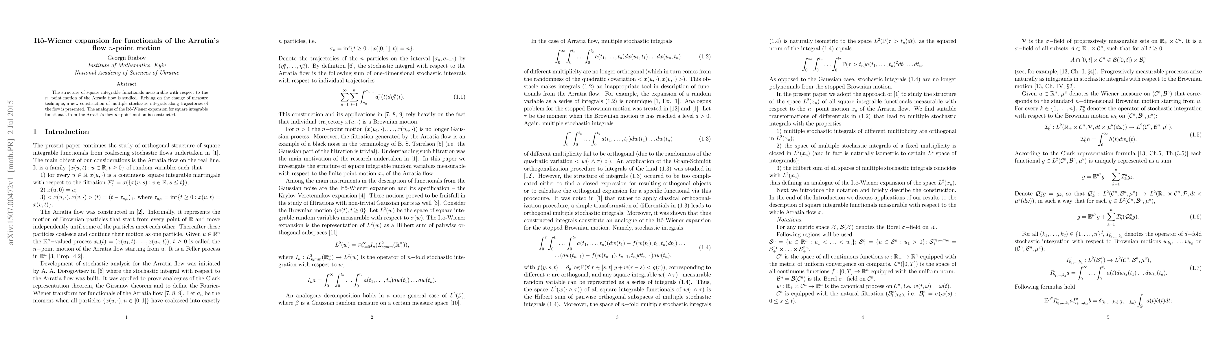 This paper introduces a new method for calculating multiple stochastic integrals along trajectories of the Arratia flow, enabling the expansion of square integrable functionals into an Ité-Wiener form.